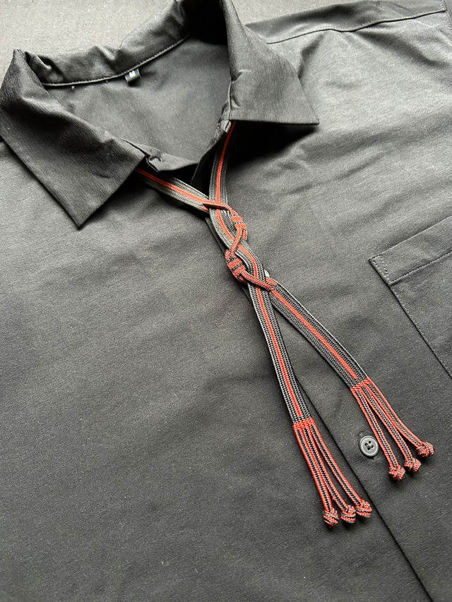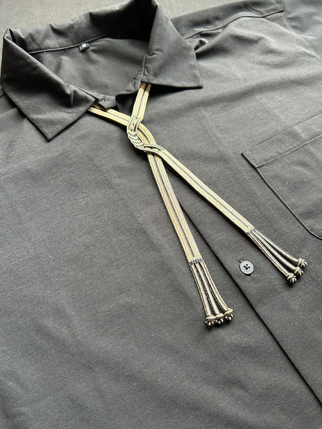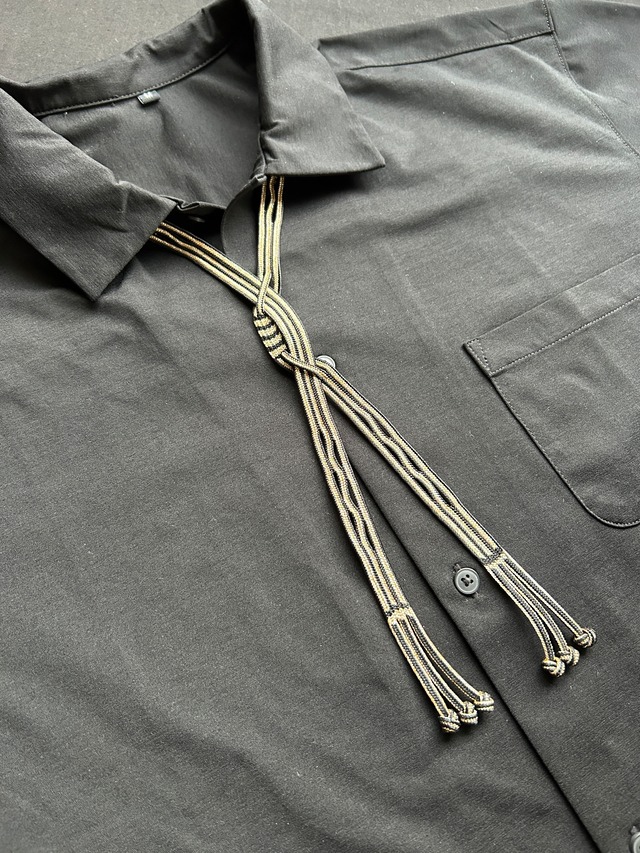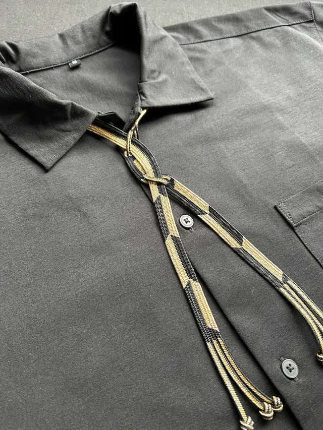 上品な艶をまとった組紐を束ね、 “流れ”のような立体感を生み出したネックコード。 細やかな縞と、ところどころにあらわれる編みの空間が 凛とした和の表情を引き立てます。 シンプルなシャツに添えるだけで、 すっと縦の線が際立ち、上品なアクセントに。 ⸻ ■ リバーシブル仕様 ◾️カラー 黒×金糸(影流) ■ サイズ ・長さ:約50cm(※写真の物) ■ 素材 ・組紐:絹70%・アクリル30% ・留め具 : ハトメボタン金具 (メッキ 金・銀) ■ お取り扱いについて ・水洗い可能です 中性洗剤を薄めて軽く押し洗い → よくすすいで陰干ししてください ・当て布をしてスチームアイロン可 ・金具部分は濡れたまま放置すると変色の可能性があります → 洗った後は金具を拭き、しっかり乾燥をお願いします ・強い力で引っ張ると金具が外れる場合があります → お取り扱いにご注意ください ⸻ ■ 発送について ・クリックポスト(追跡あり) ・黒台紙に固定した簡易包装でお届けします