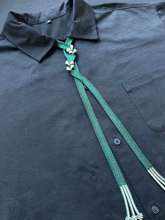 森の静けさを思わせる深緑の組紐。 穏やかでありながら、どこか芯のある佇まい。 自然と調和するように、心地よく首元を彩ります。 小さな町の組紐工場で、職人の手によって組み上げられた一本。 その糸の重なりは、時を越え、いま静かに光を放ちます。 金具のない軽やかな構造が、自然に首元へ寄り添い、 日常の装いに穏やかな存在感を添えます。 ⸻ 素材:絹70%、アクリル30% 裏地:生成り・金糸混合(リバーシブル仕様ではありません) 長さ:約60cm 希少カラーは特別仕様として、 イベント展示や特別価格での販売を予定しています。 長さ・価格は各商品ページにてご確認ください。 ⸻ お手入れ方法: ・手洗い(軽く押し洗い) ・中性洗剤を薄めて使用可(つけおき不可) ・陰干し/スチームアイロン可(あて布使用) ⸻ 工場で組み上げられた組紐を使い、 職人の手で創作された作品たち。 その在庫も少しずつ減り、 再販の難しいものが増えてきました。 工場はすでになく、今ある作品が 最後の在庫となるものもございます。 現在の在庫状況や希少性に合わせ、 価格を見直しております。 末長くご愛用いただけましたら嬉しいです。 ⸻ お届けについて クリックポスト(全国一律185円・追跡あり)にてお届けします。 黒の台紙に作品を添え、QR付きのショップカードを同封。 ぷちぷちで丁寧に包み、茶封筒で発送いたします。 新しい箱や資材を過剰に使うことよりも、 かつて組紐が生まれた工場の空気をそのまま包んでお届けする。 そんな想いで、ひとつずつお送りしています。 ⸻ We welcome international inquiries. Please feel free to contact us before your purchase. — Tunagiyasan 「組紐で、思いをつなぐ。」 ⸻ #組紐 #ループタイ #tunagiyasan #和モダン #handcraftedinjapan #unisexaccessory #japanesecraft #minimaldesign