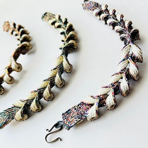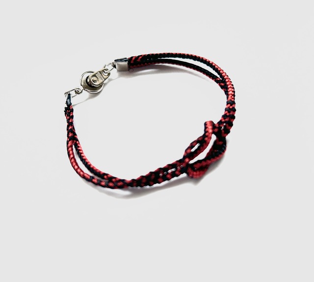 昭和期に稼働していた組紐工場で組まれた紐を用い、 眼鏡紐として使われていた組紐を、ブレスレットとして仕立てました。 同じ種類の組紐を使用していますが、 色の出方や撚り、表情には一点ずつ個体差があります。 組紐ならではの風合いとしてお楽しみください。 日常使いしやすい軽やかな着け心地で、 初めての方にも取り入れていただきやすい一品です。 サイズ 18cm (留め具込み) カラー 朱色×黒 現在は、仕立て上がったものから順にご紹介しています。 今後、色展開が増えた際には、 カラーをお選びいただける形でのご案内も予定しています。 ※ クリックポスト(全国一律185円)でお届けします 組紐の表情をもう少し楽しみたい方には、 ネックコードや帯留めなどの作品もご覧いただけたら嬉しいです。