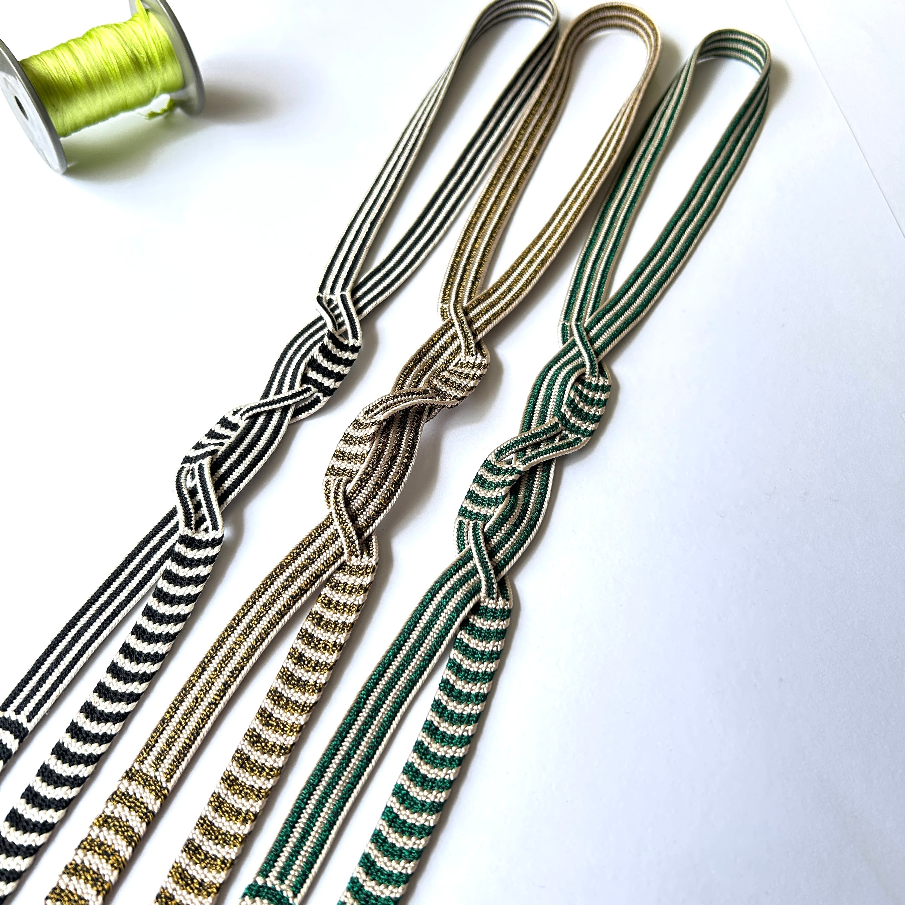 ベーシック捻りループタイ[緑 × 生成り]