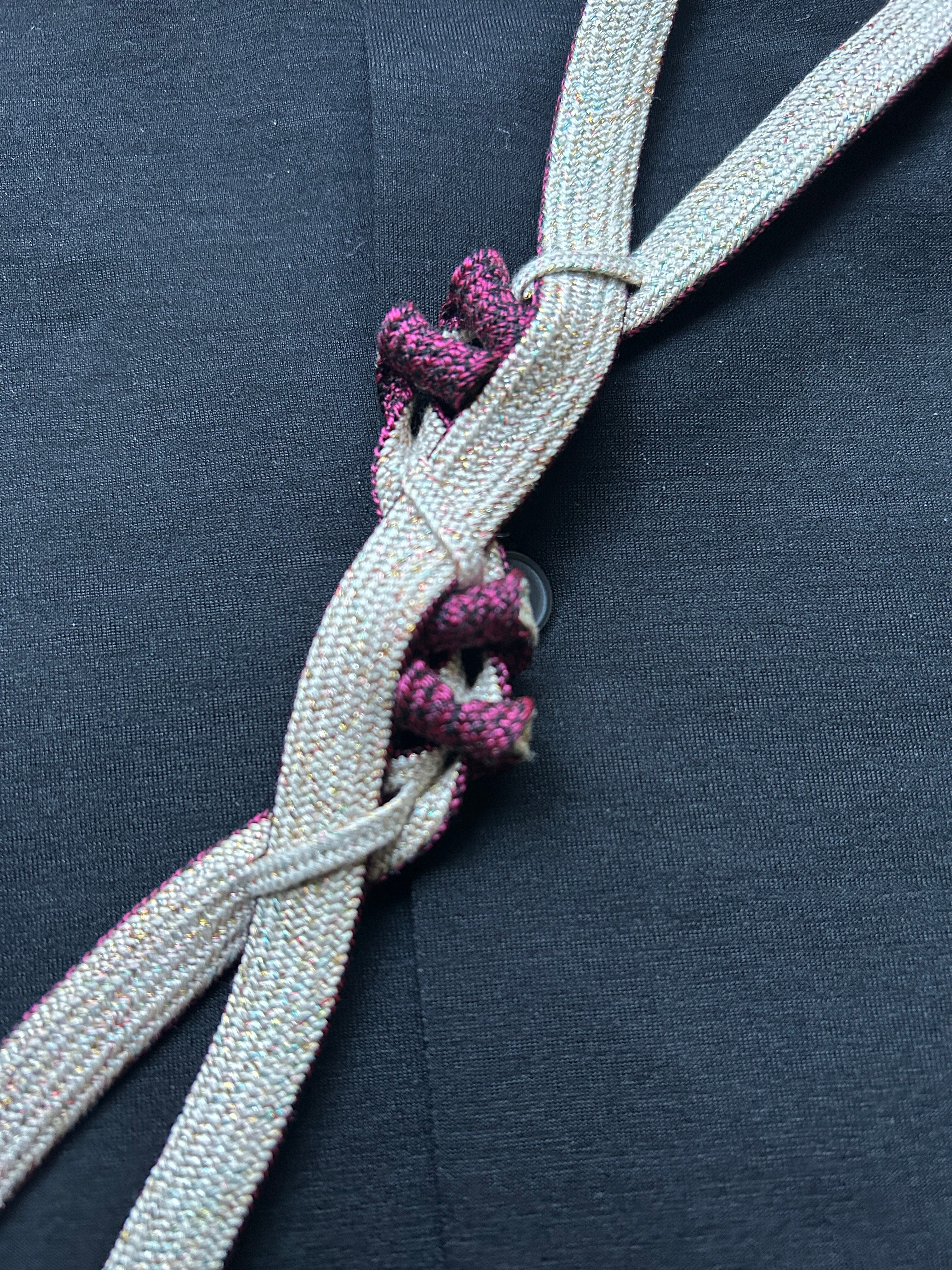This kumihimo loop tie is made from cords braided in a traditional Japanese factory during the Showa era.