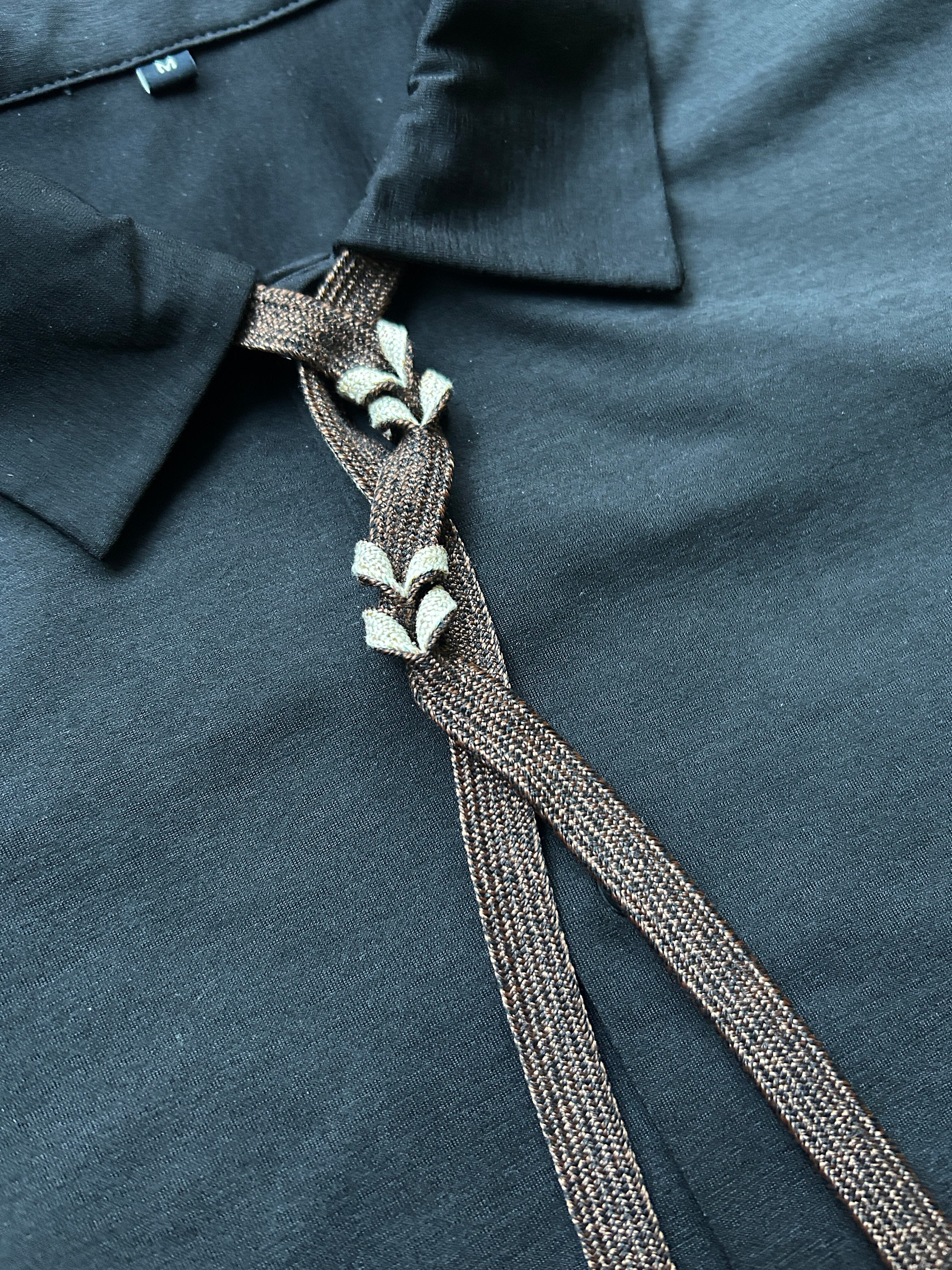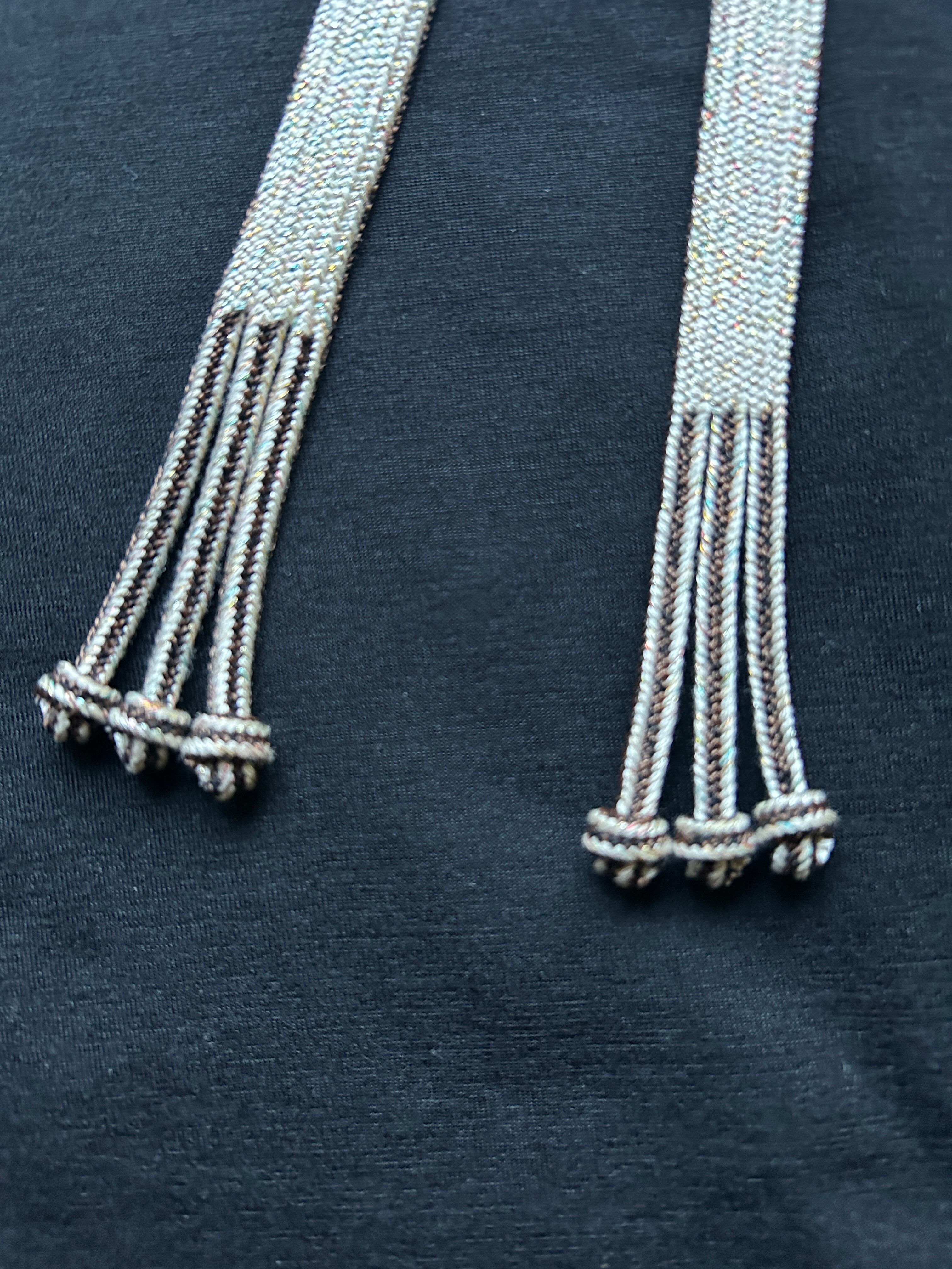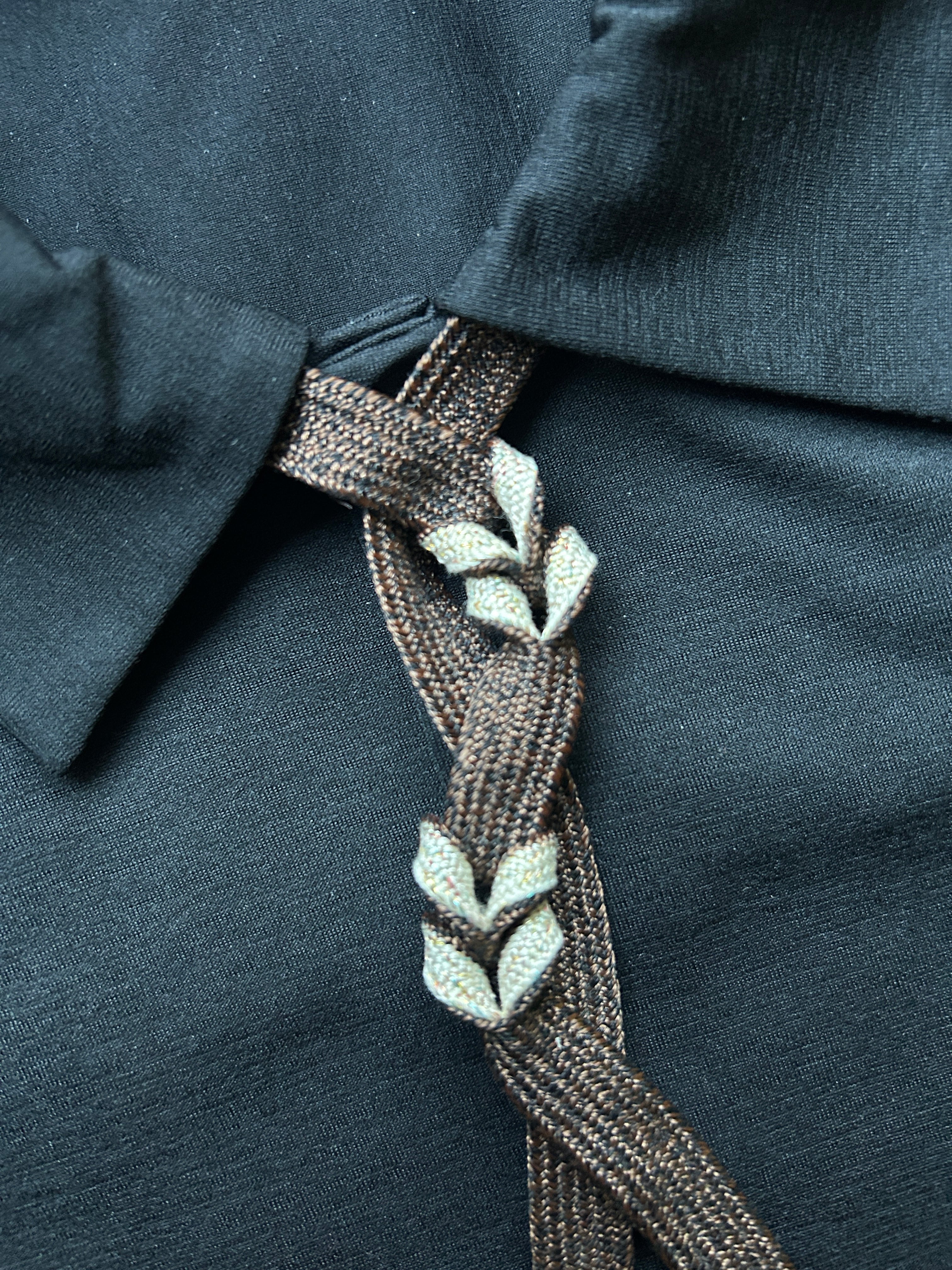 小さな町の組紐工場で、職人の手によって組み上げられた一本。