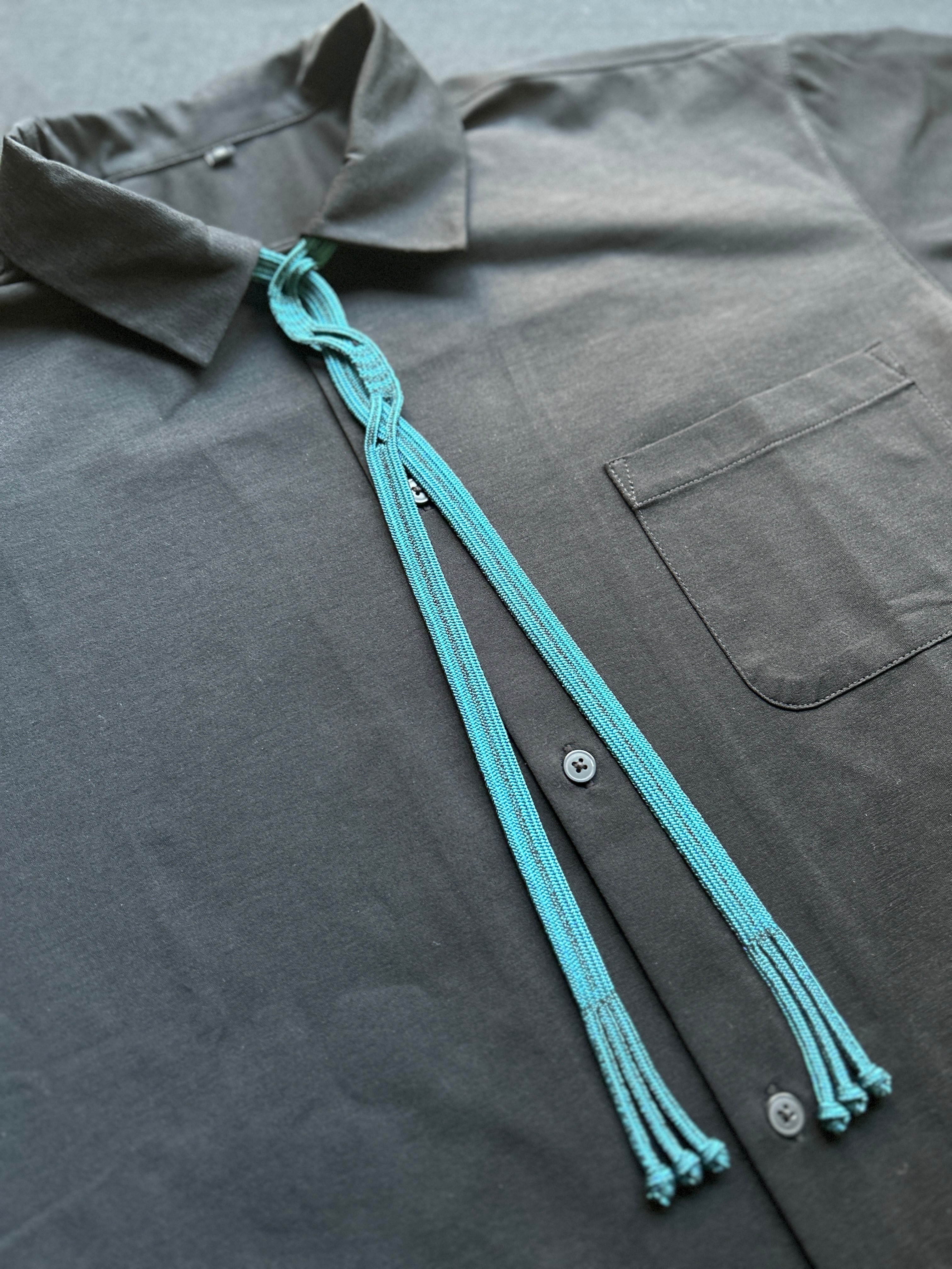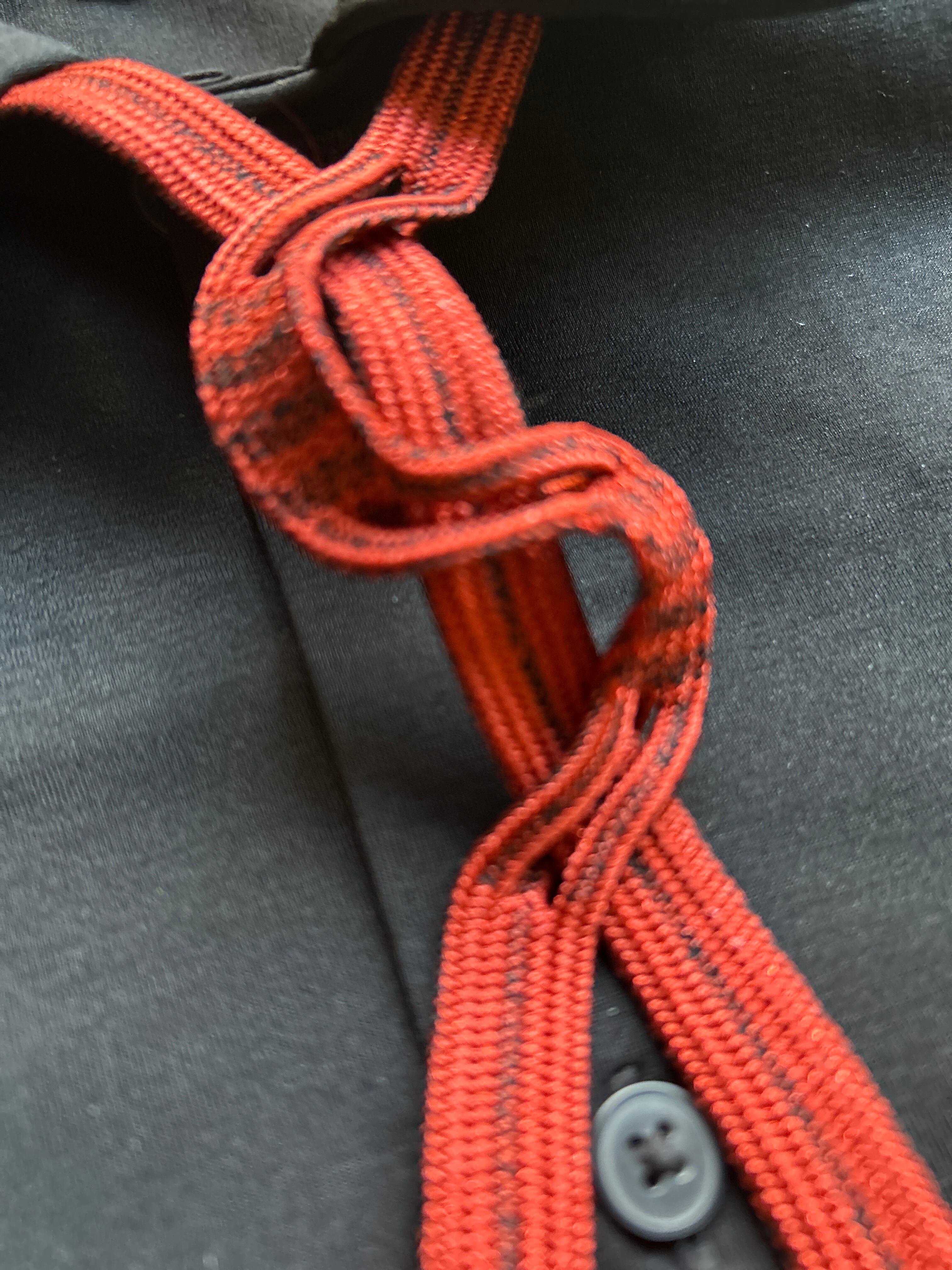 This striped kumihimo loop tie adds a subtle accent to your outfit.