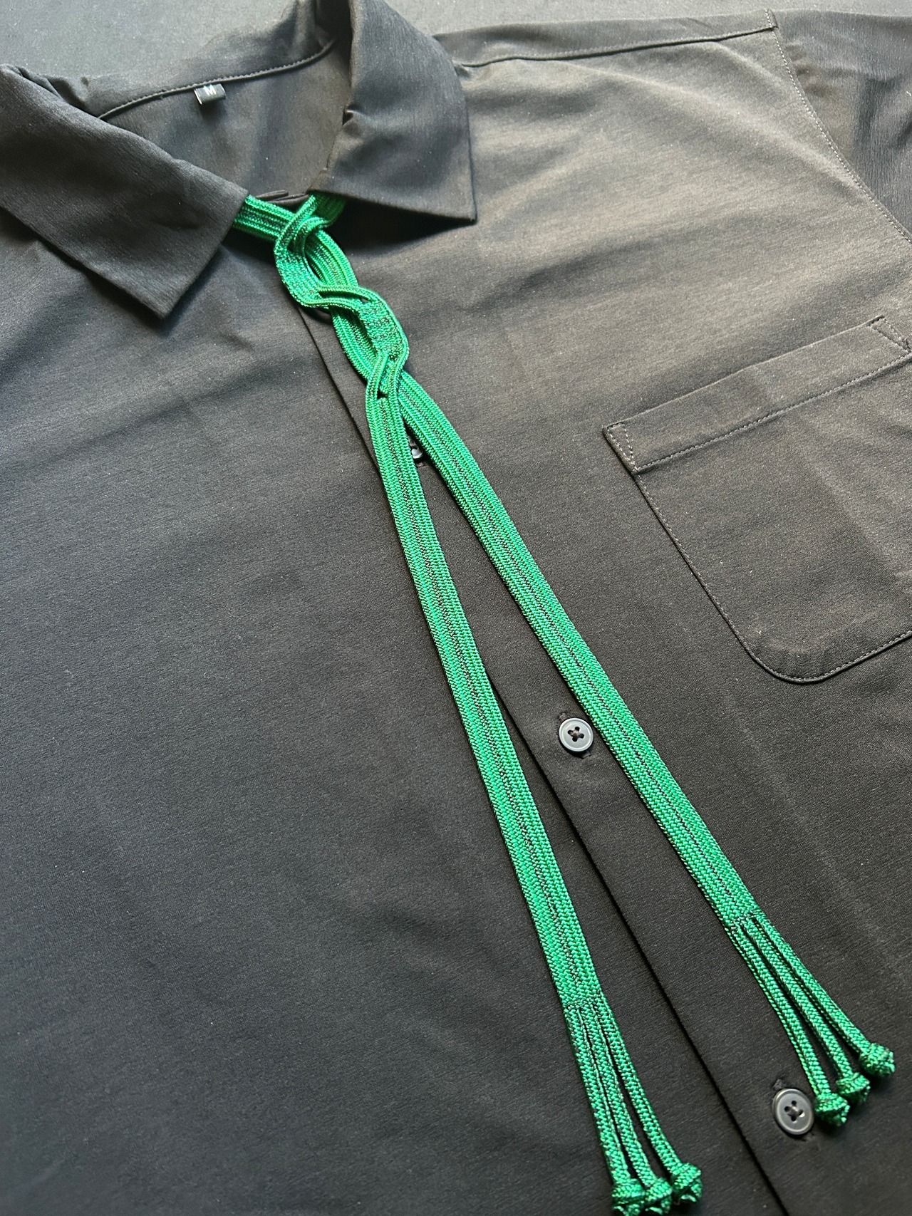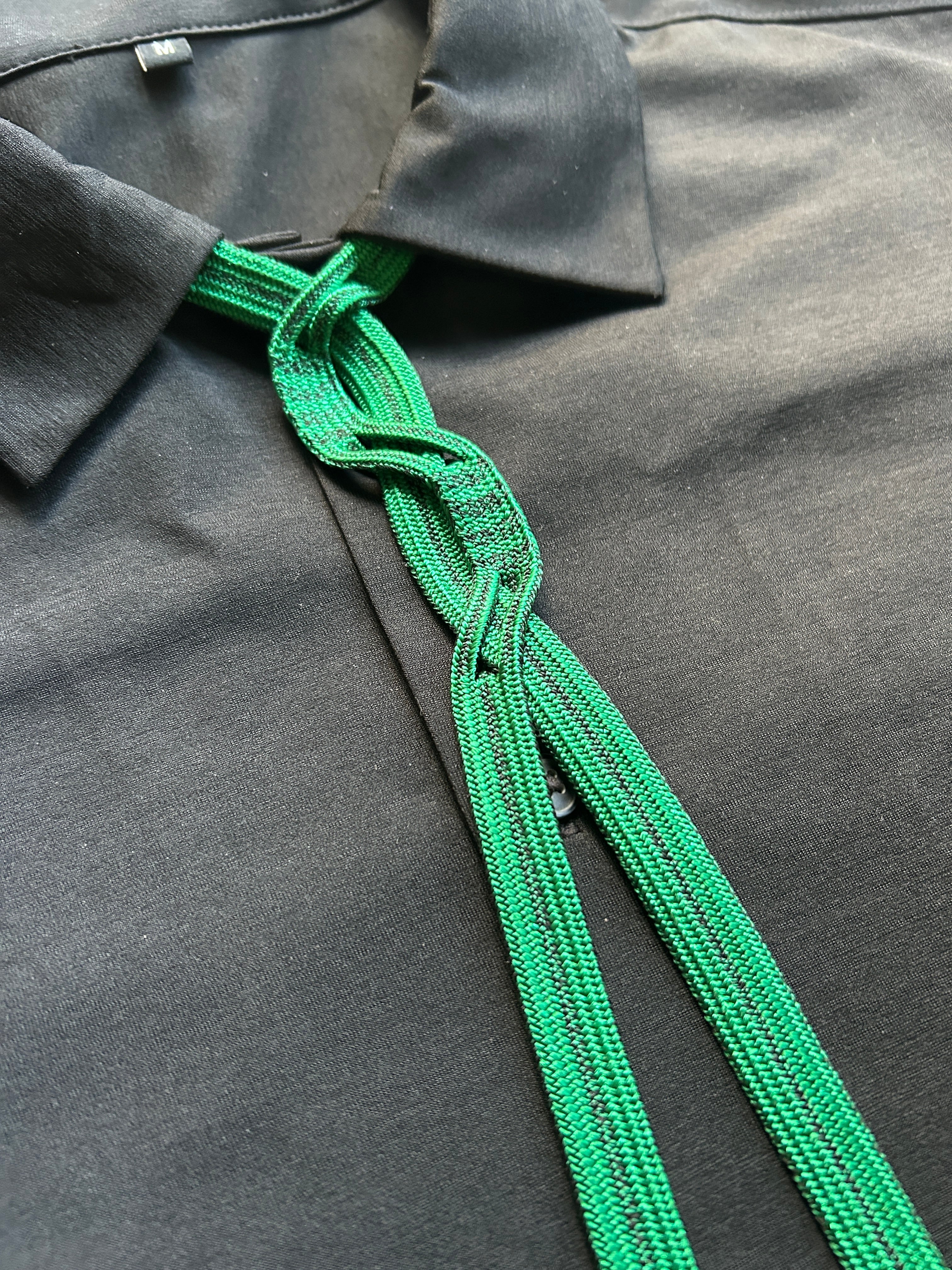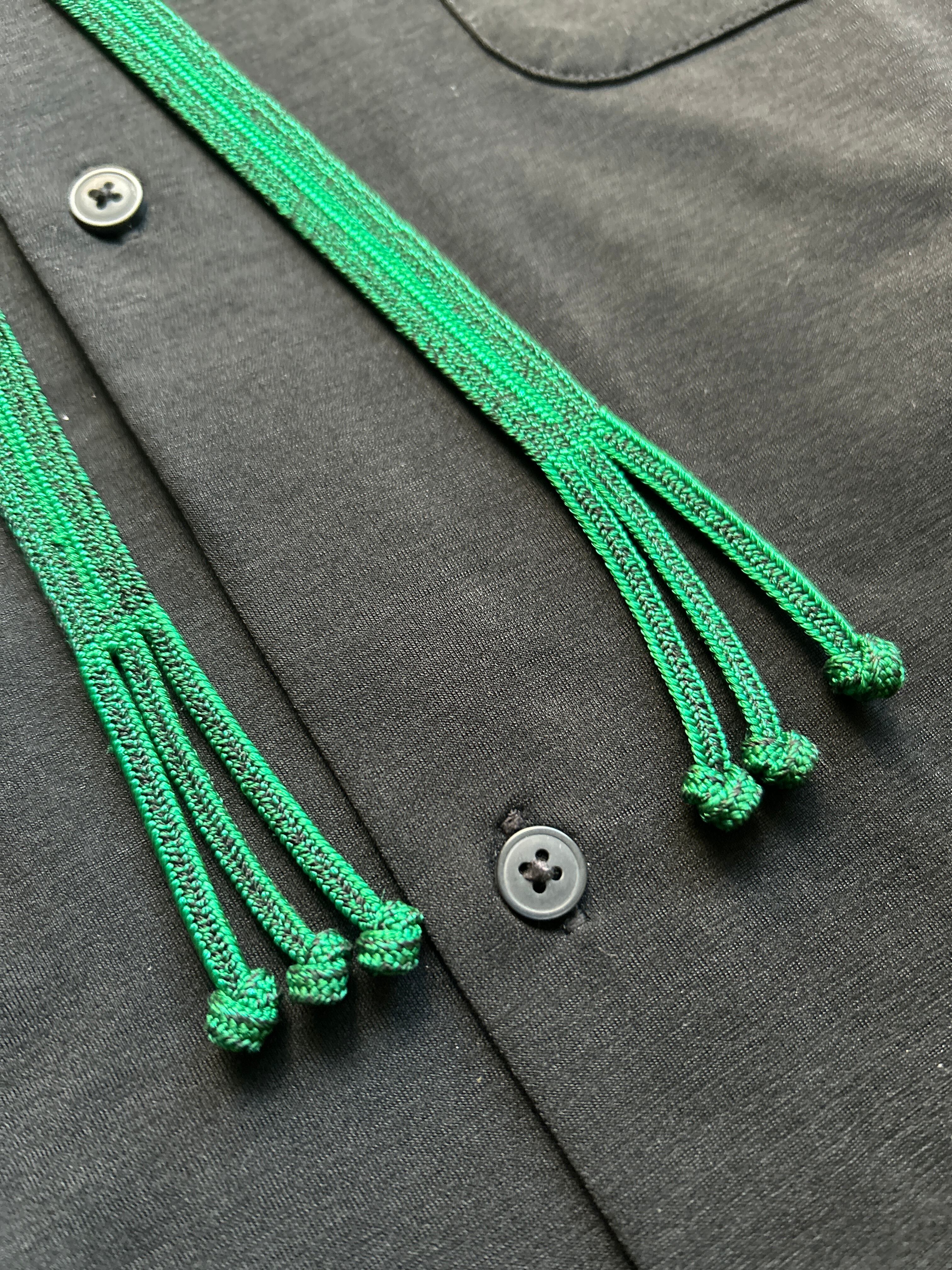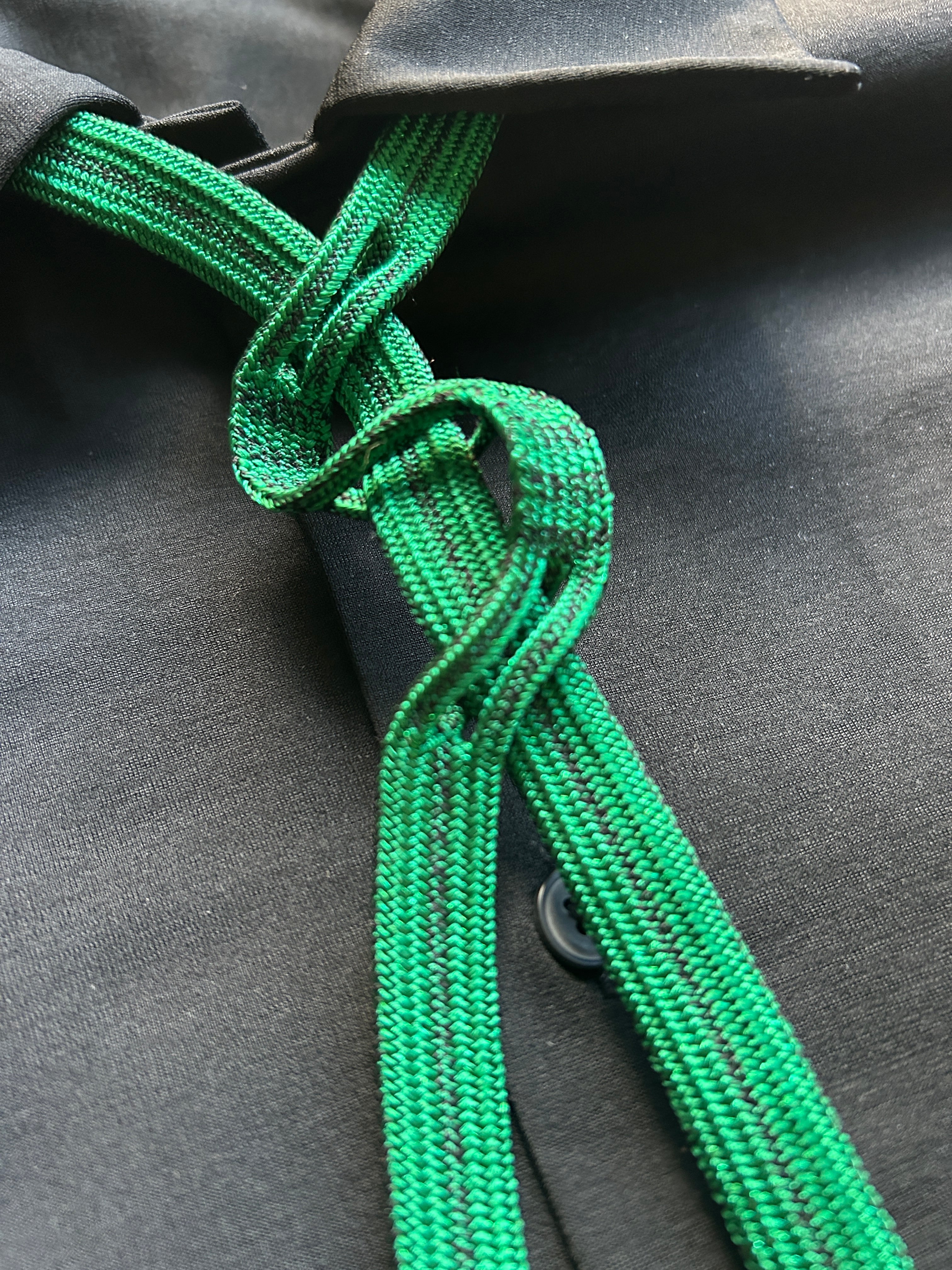 Handwoven Kumihimo loop tie with a soft sheen and reversible color tone.