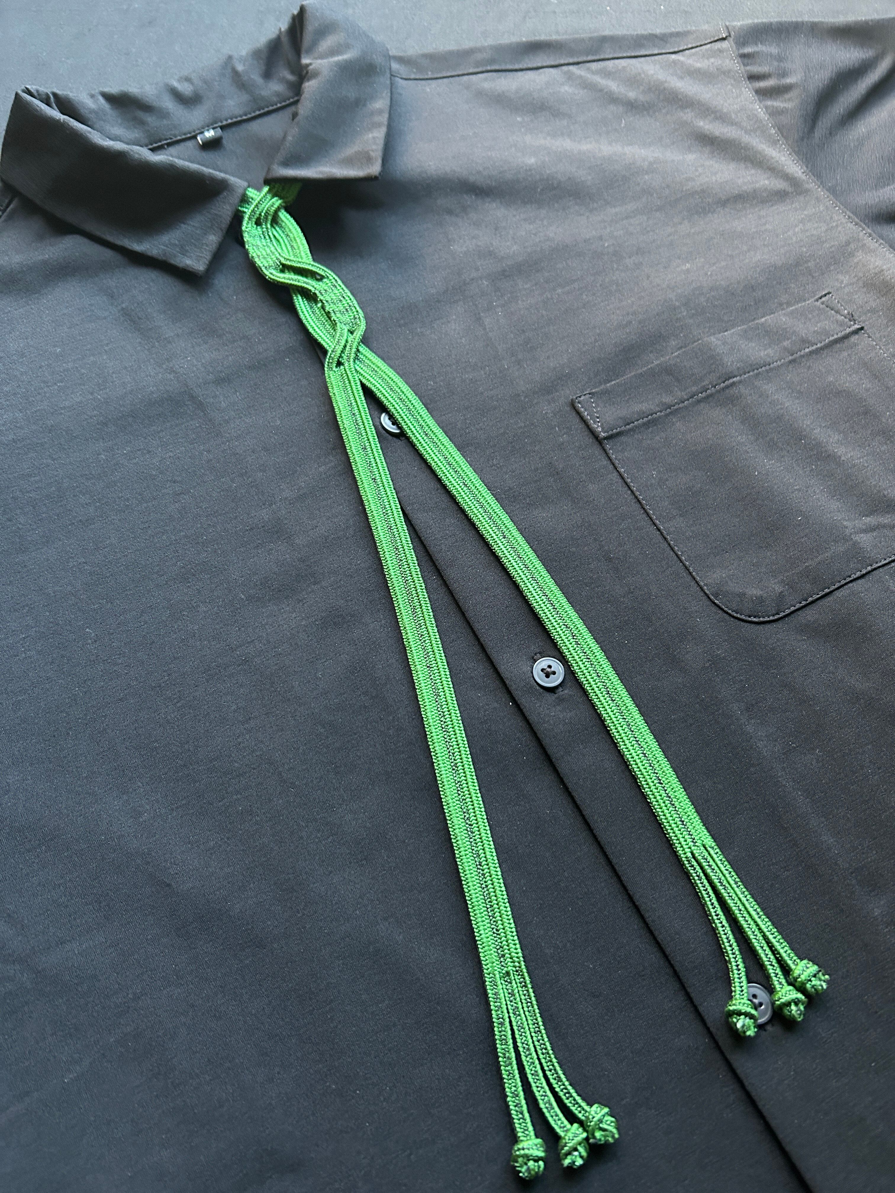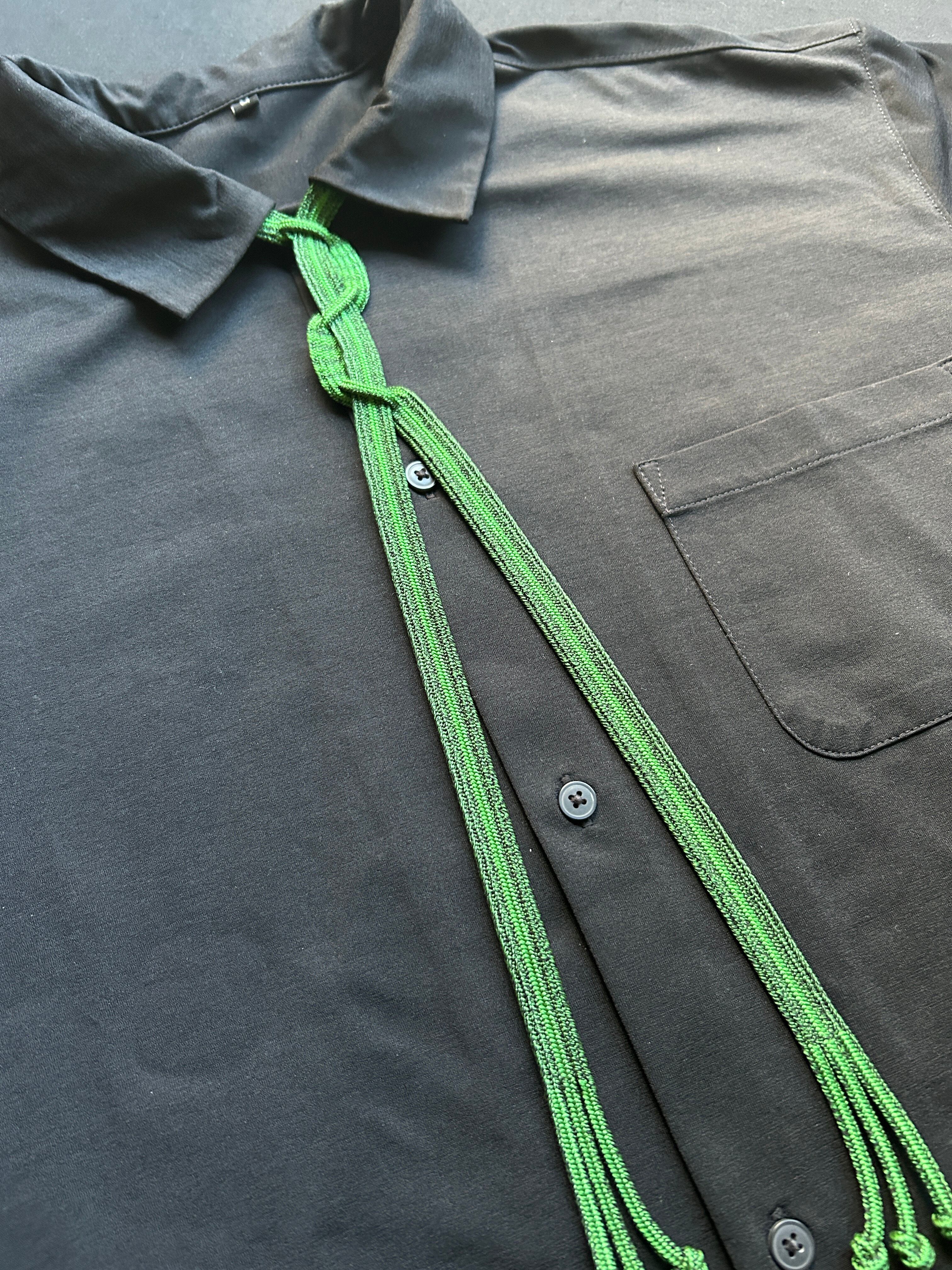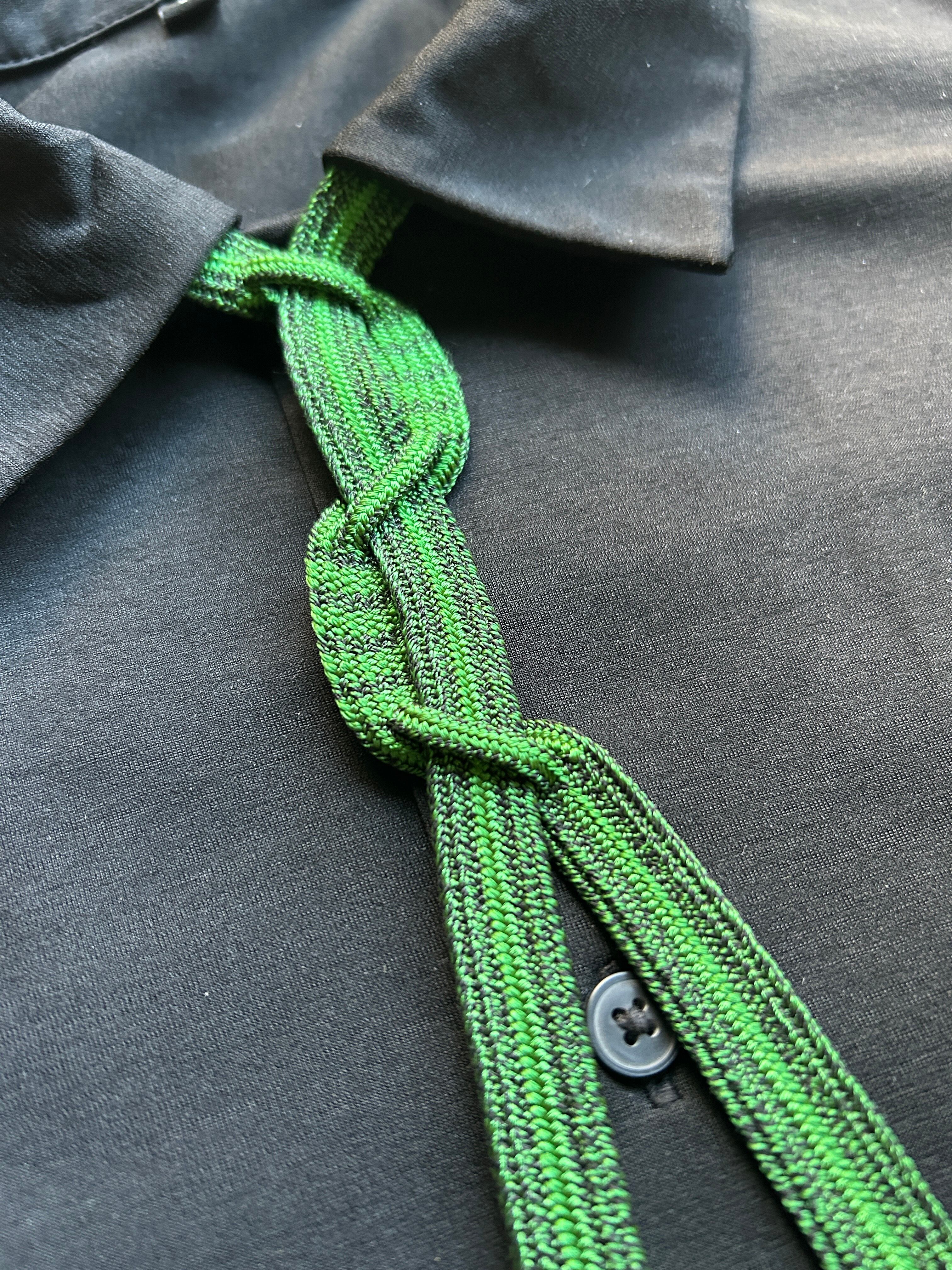 Handwoven Kumihimo loop tie with a soft sheen and reversible color tone.
