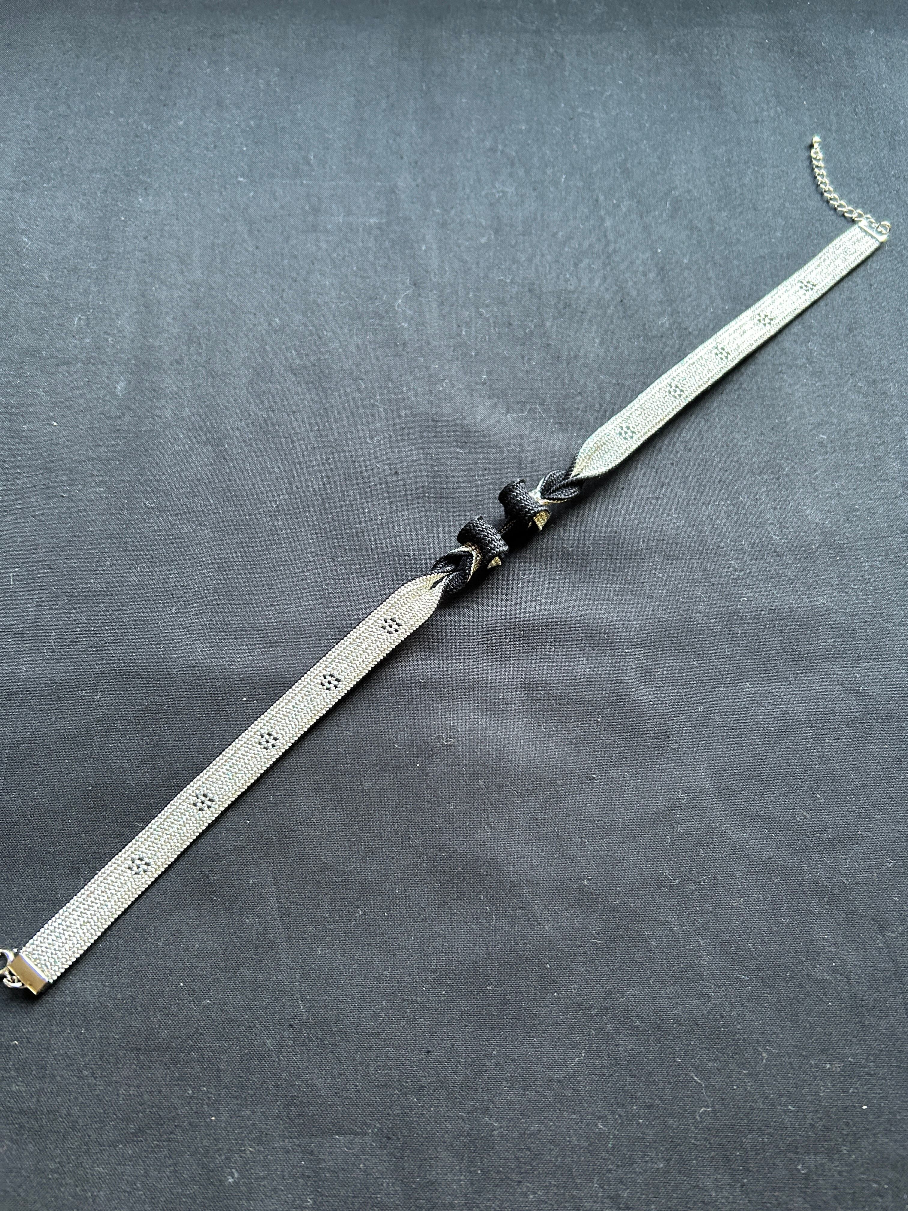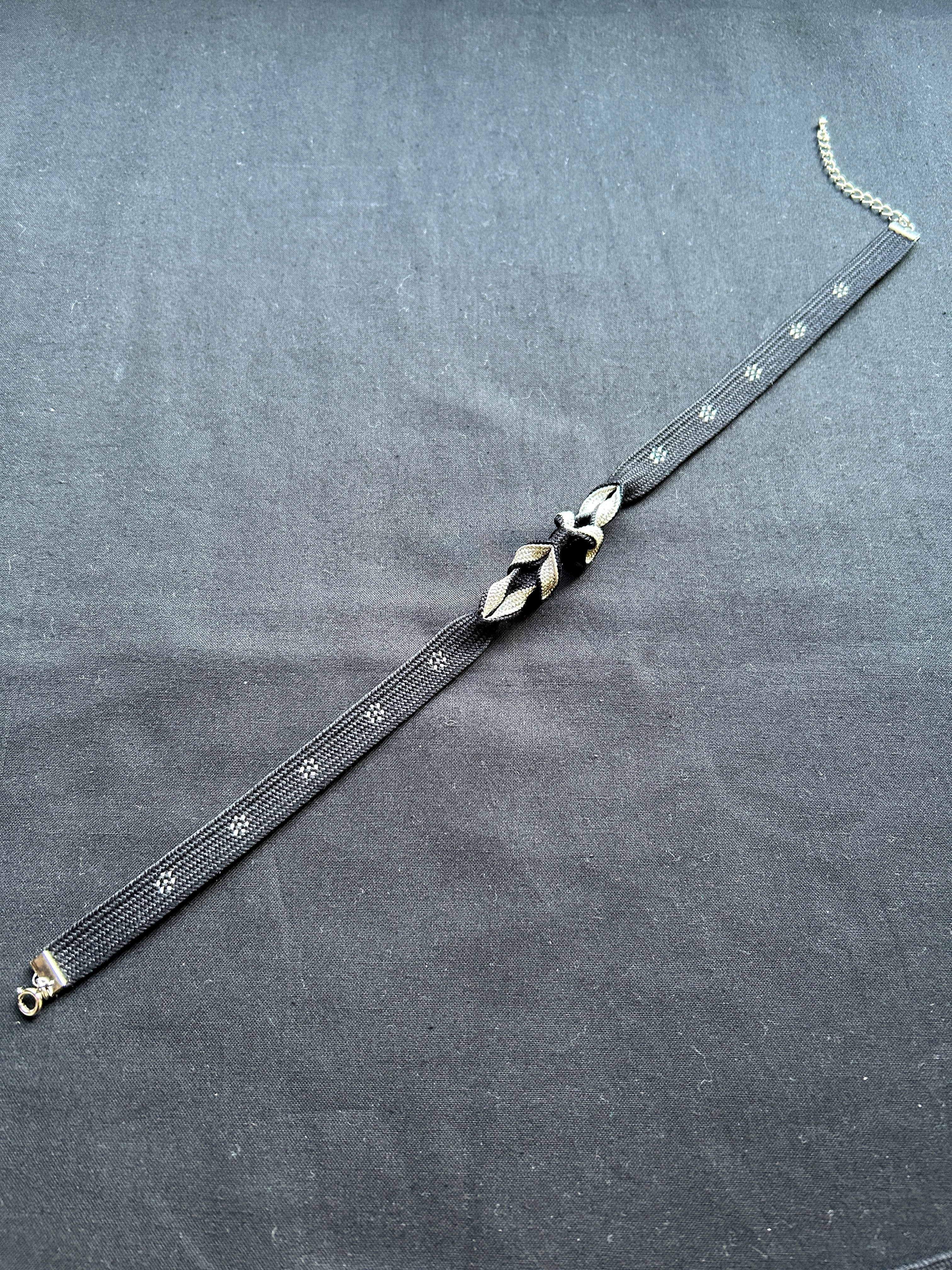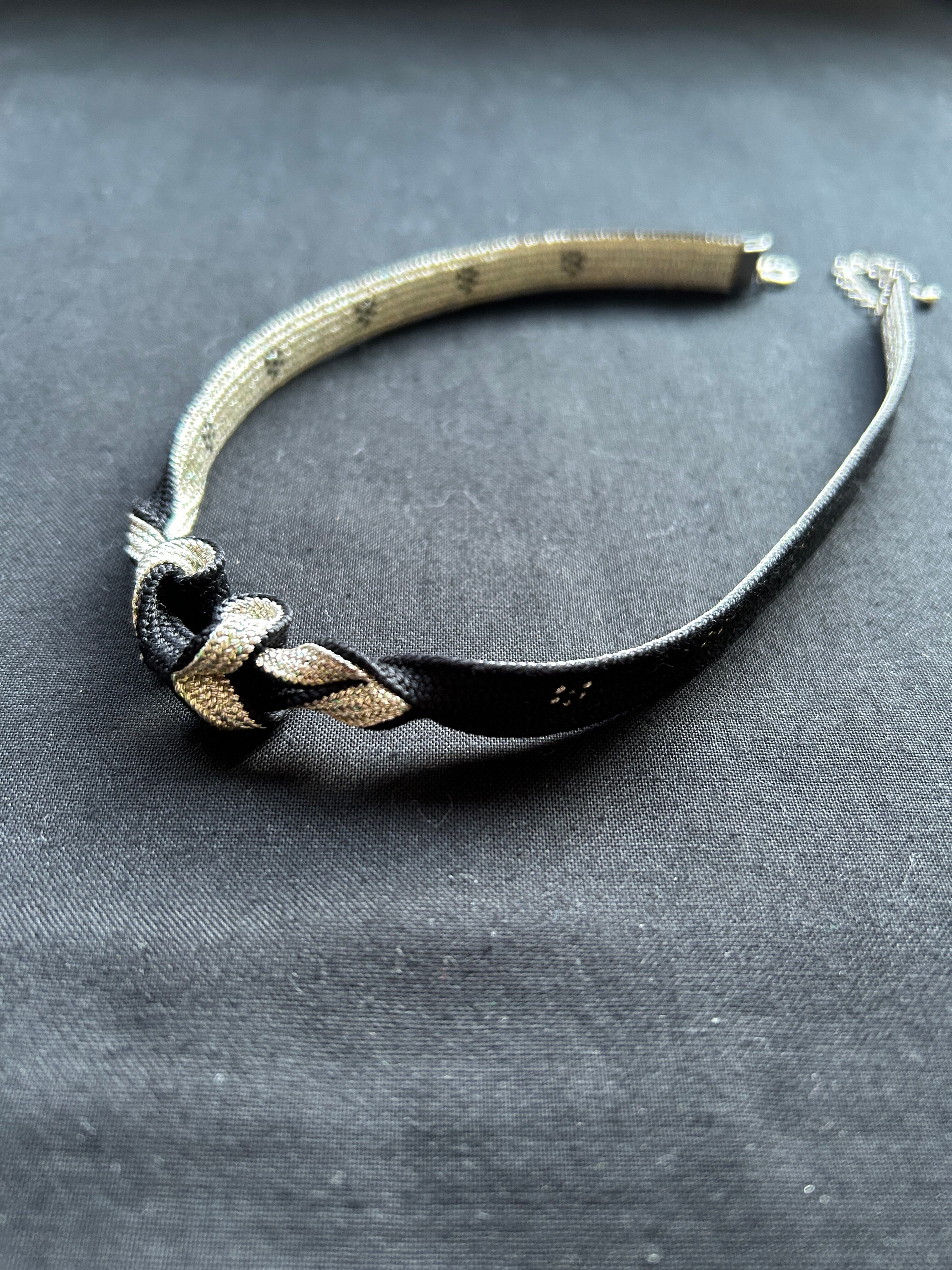 黒銀捻りベーシックチョーカー〈花柄〉|組紐アクセサリー|Tunagiyasan