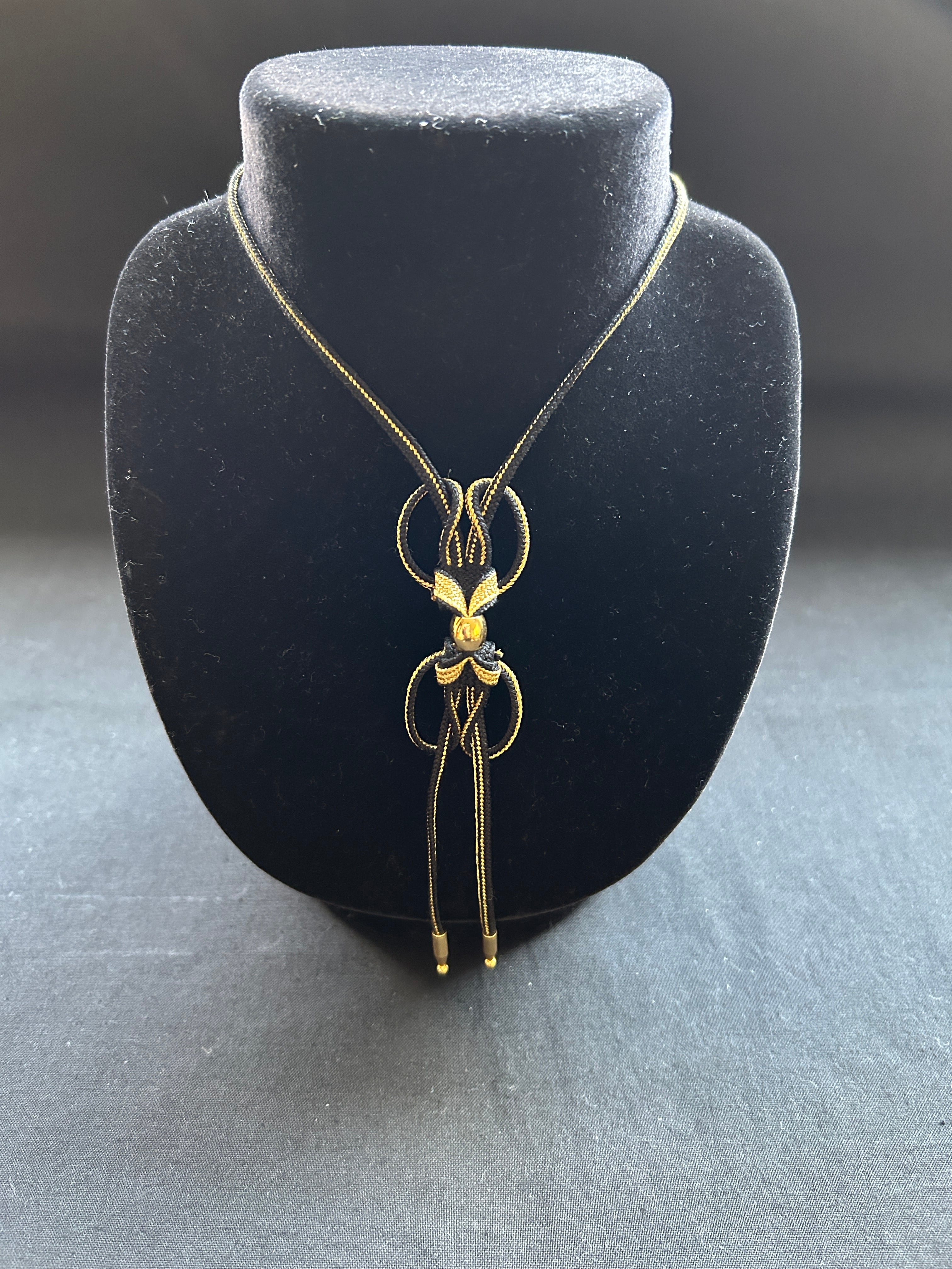 中央のパーツは、複数の紐を立体的に重ねて造形されたもの。