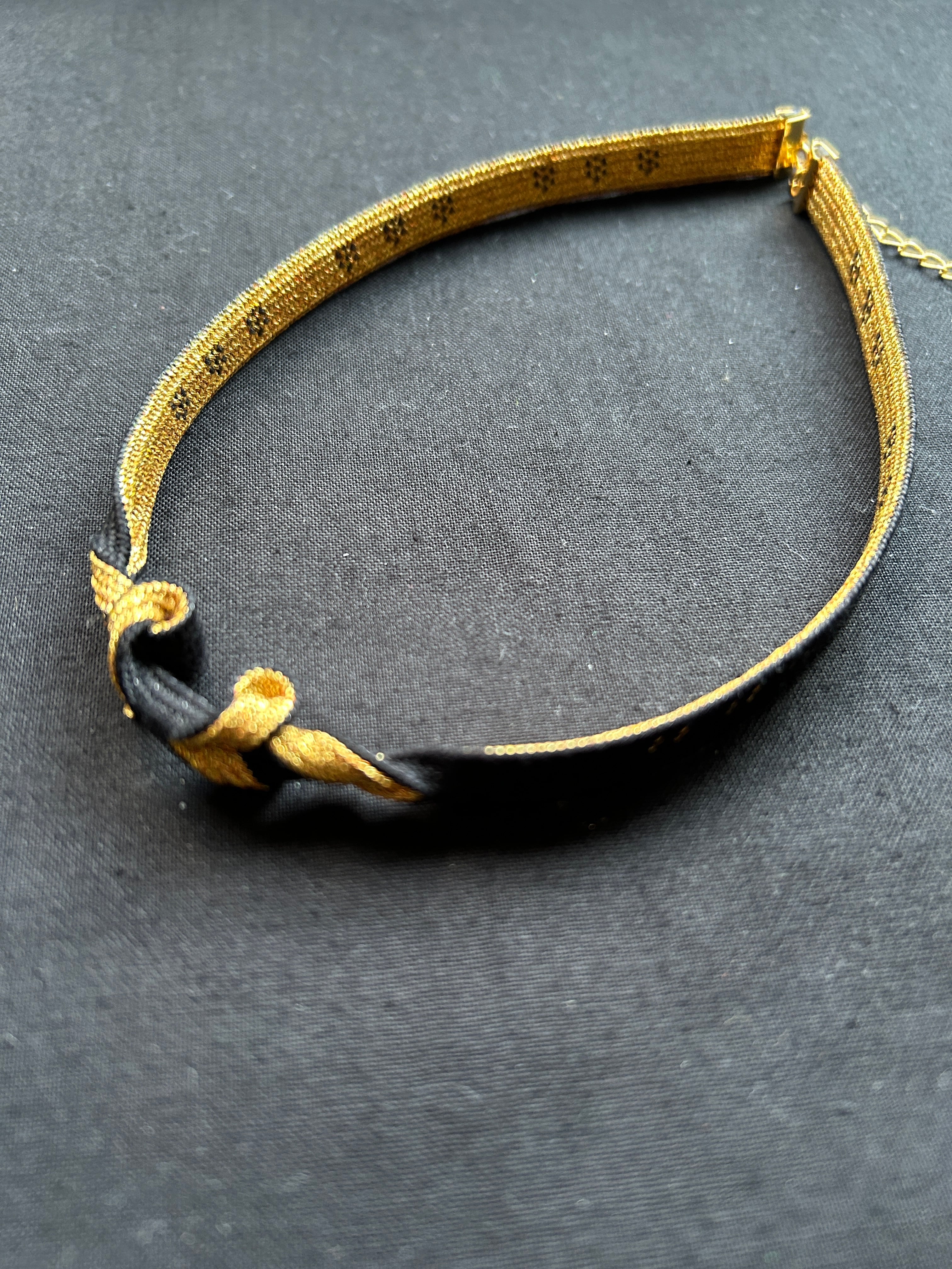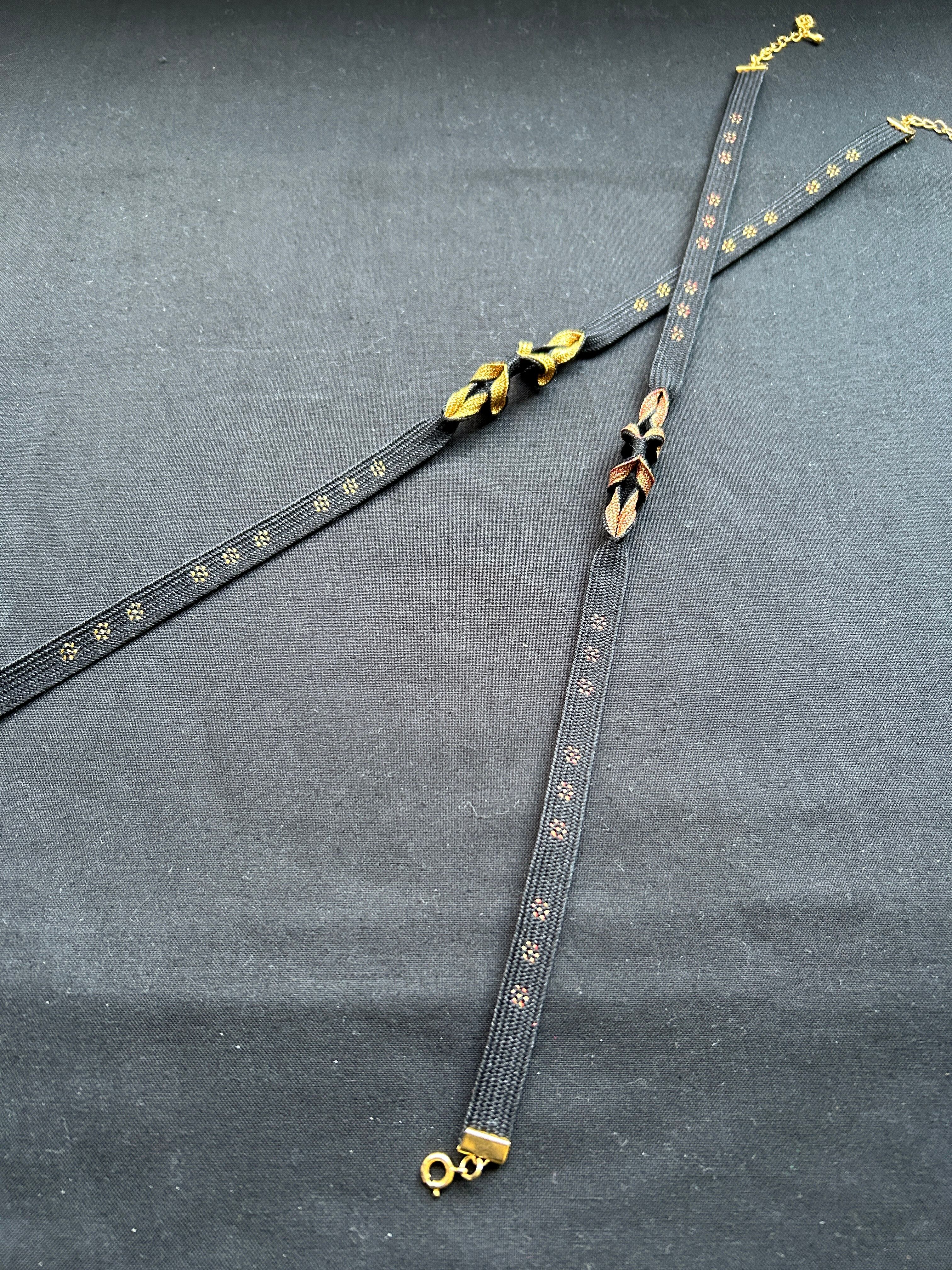 黒金・細み花柄チョーカー〈捻りベーシック〉|組紐アクセサリー|Tunagiyasan