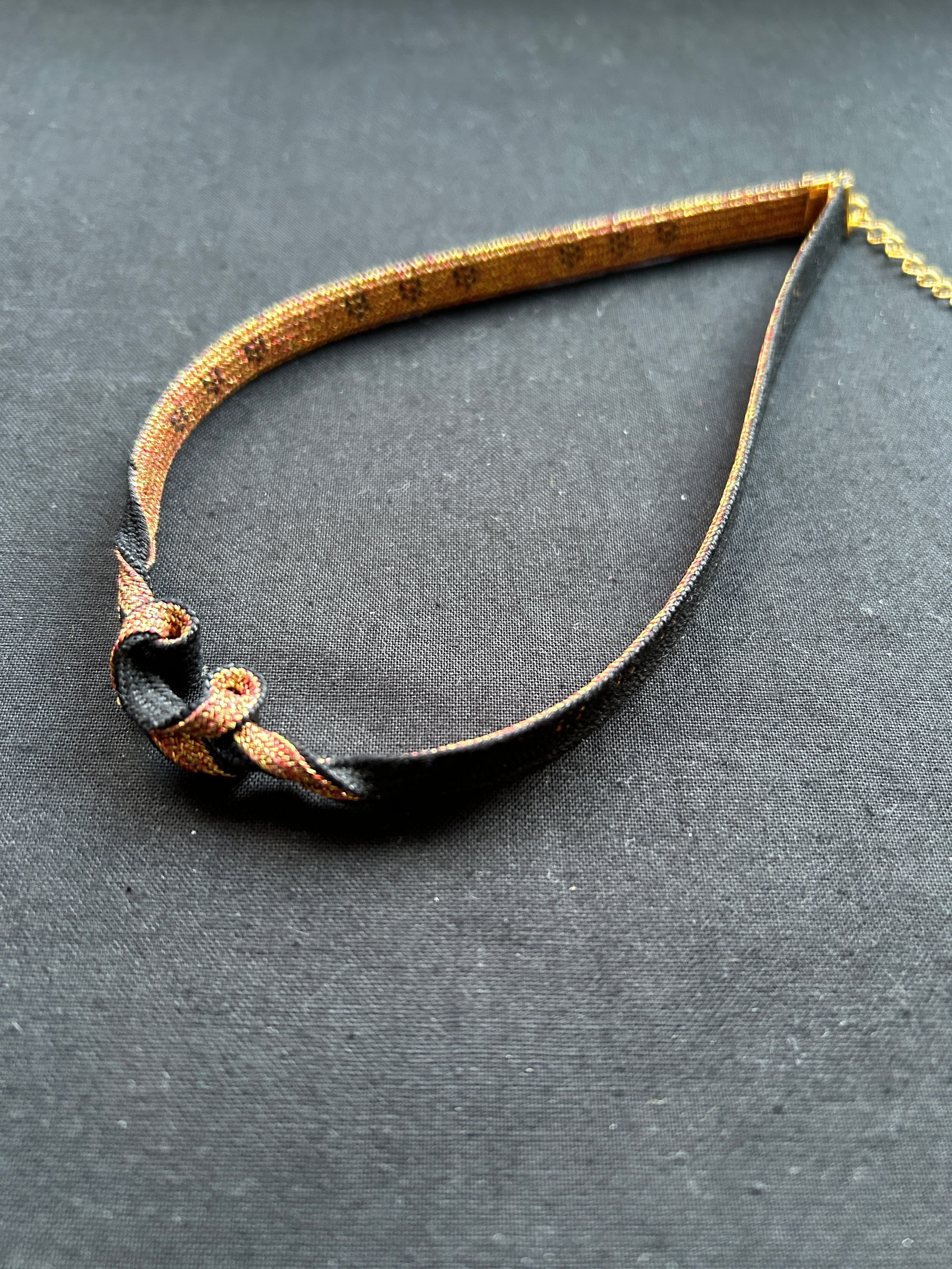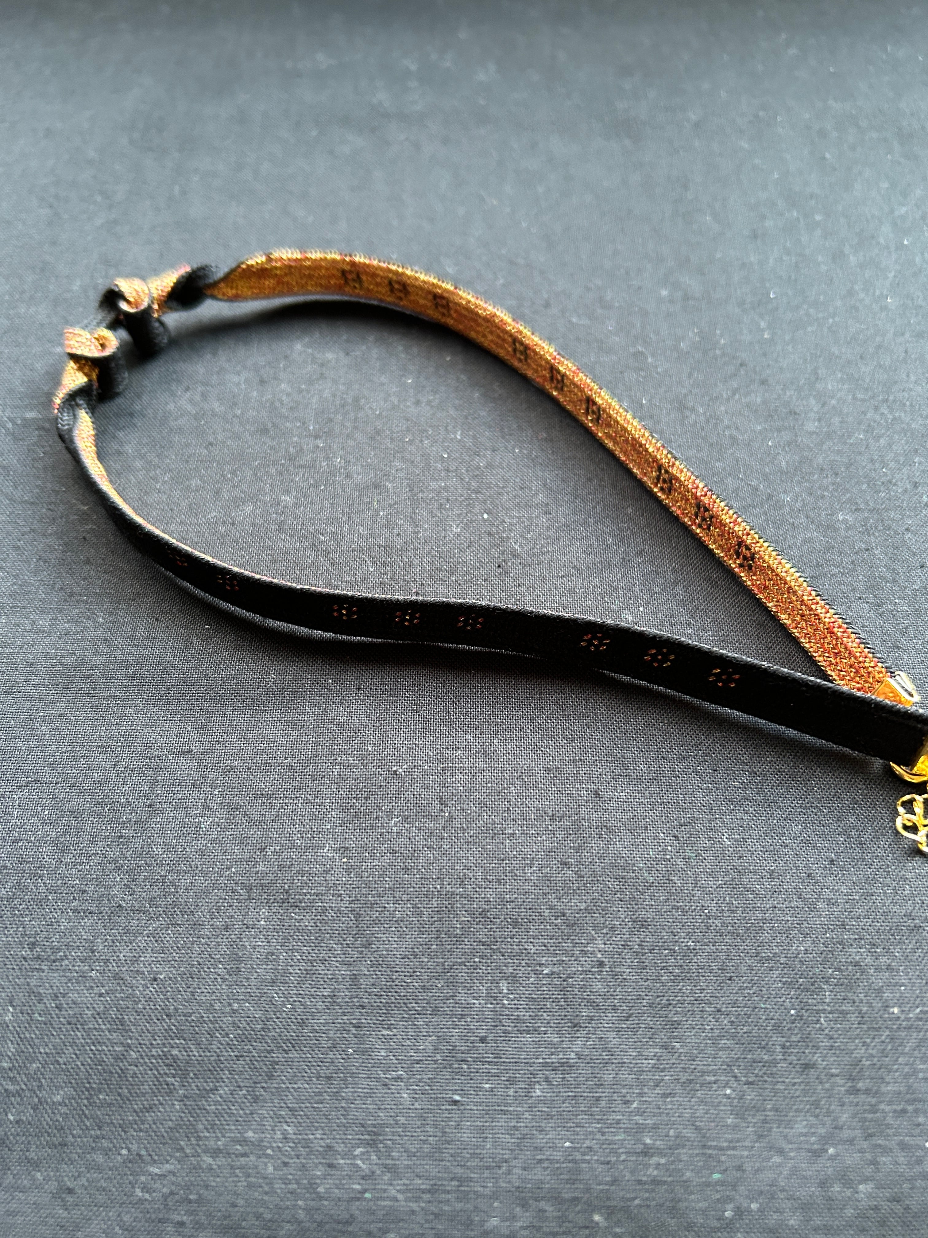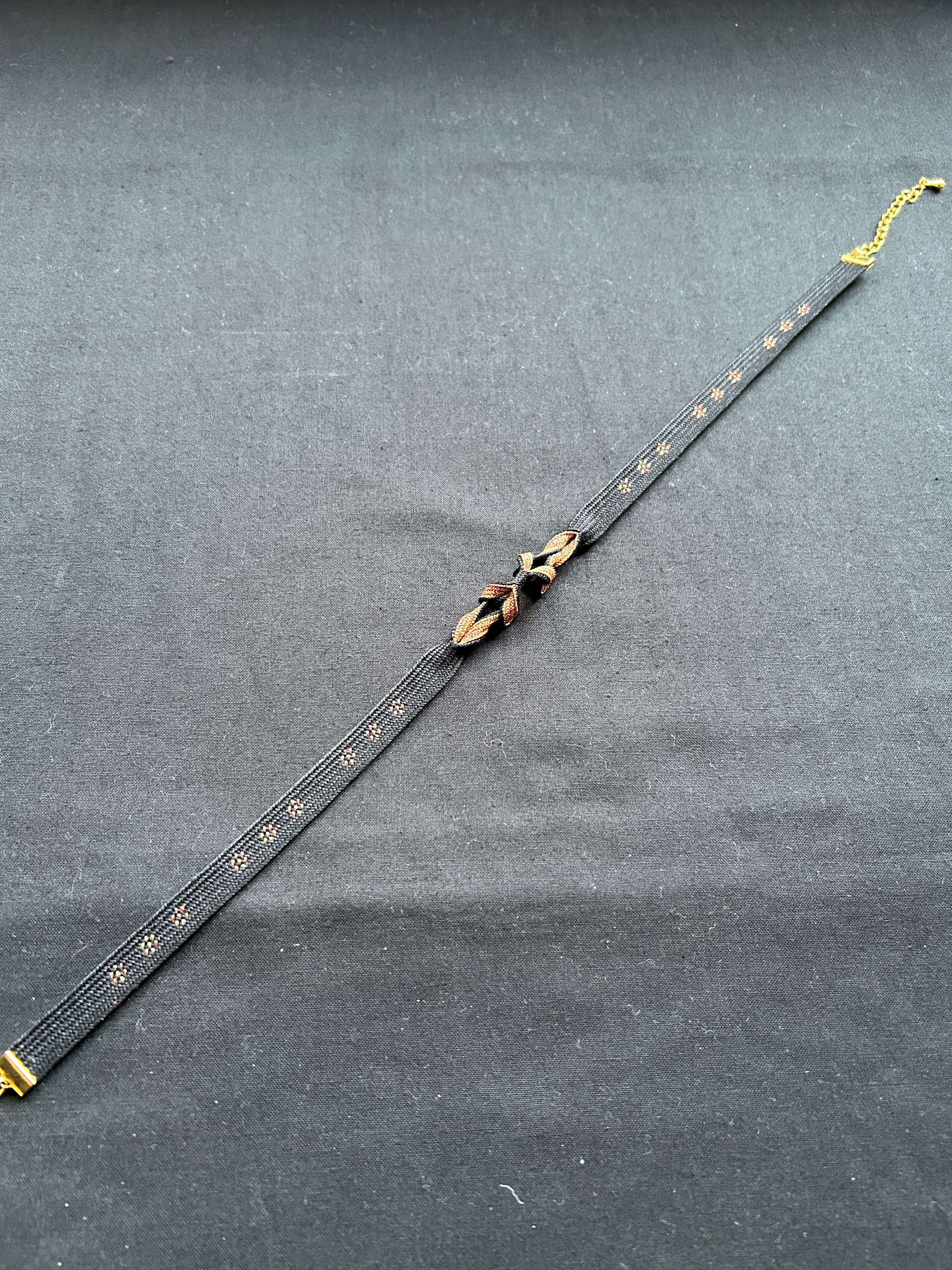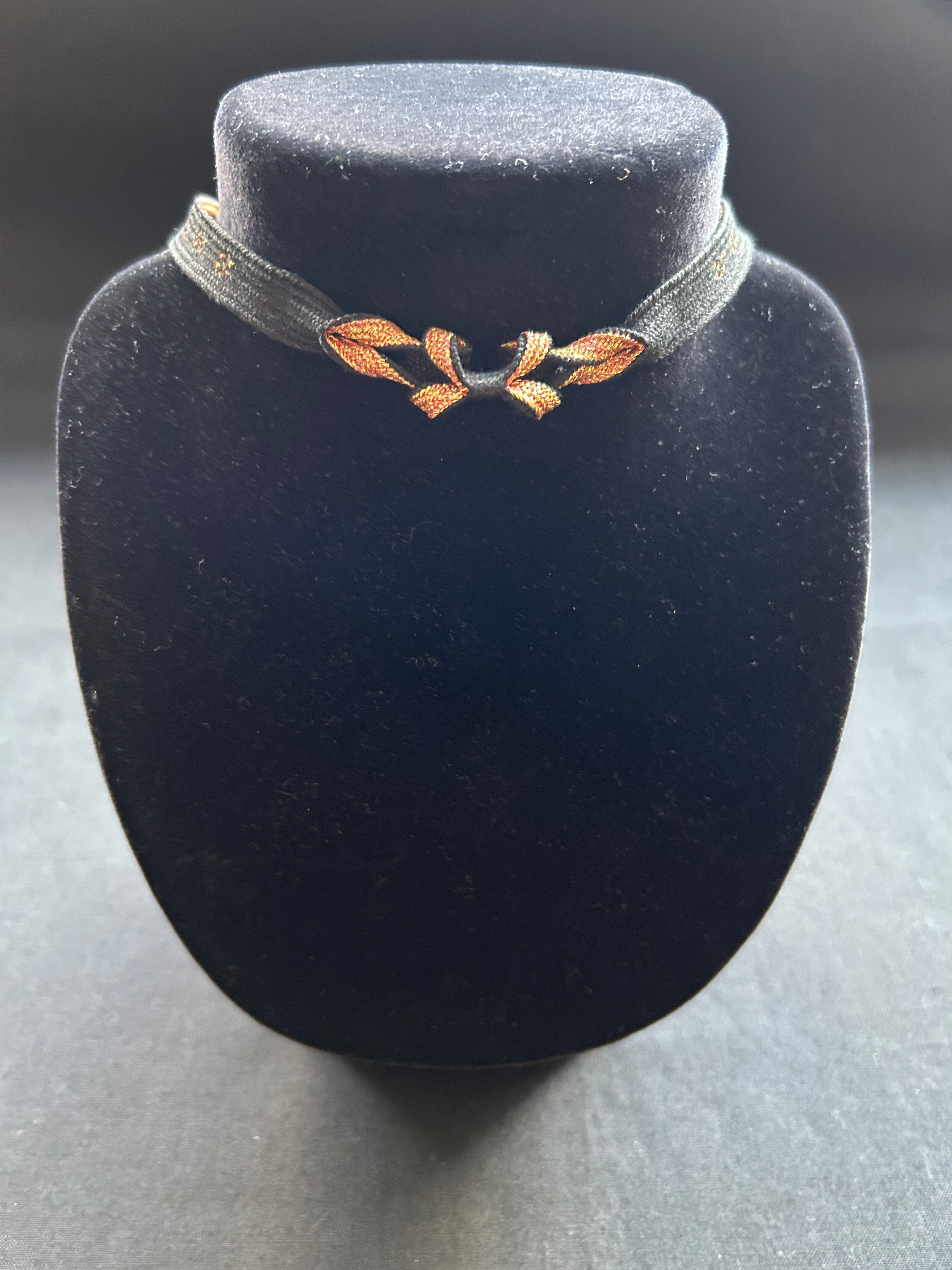 黒橙・細み花柄チョーカー〈捻りベーシック〉|組紐アクセサリー|Tunagiyasan(希少カラー・限定)
