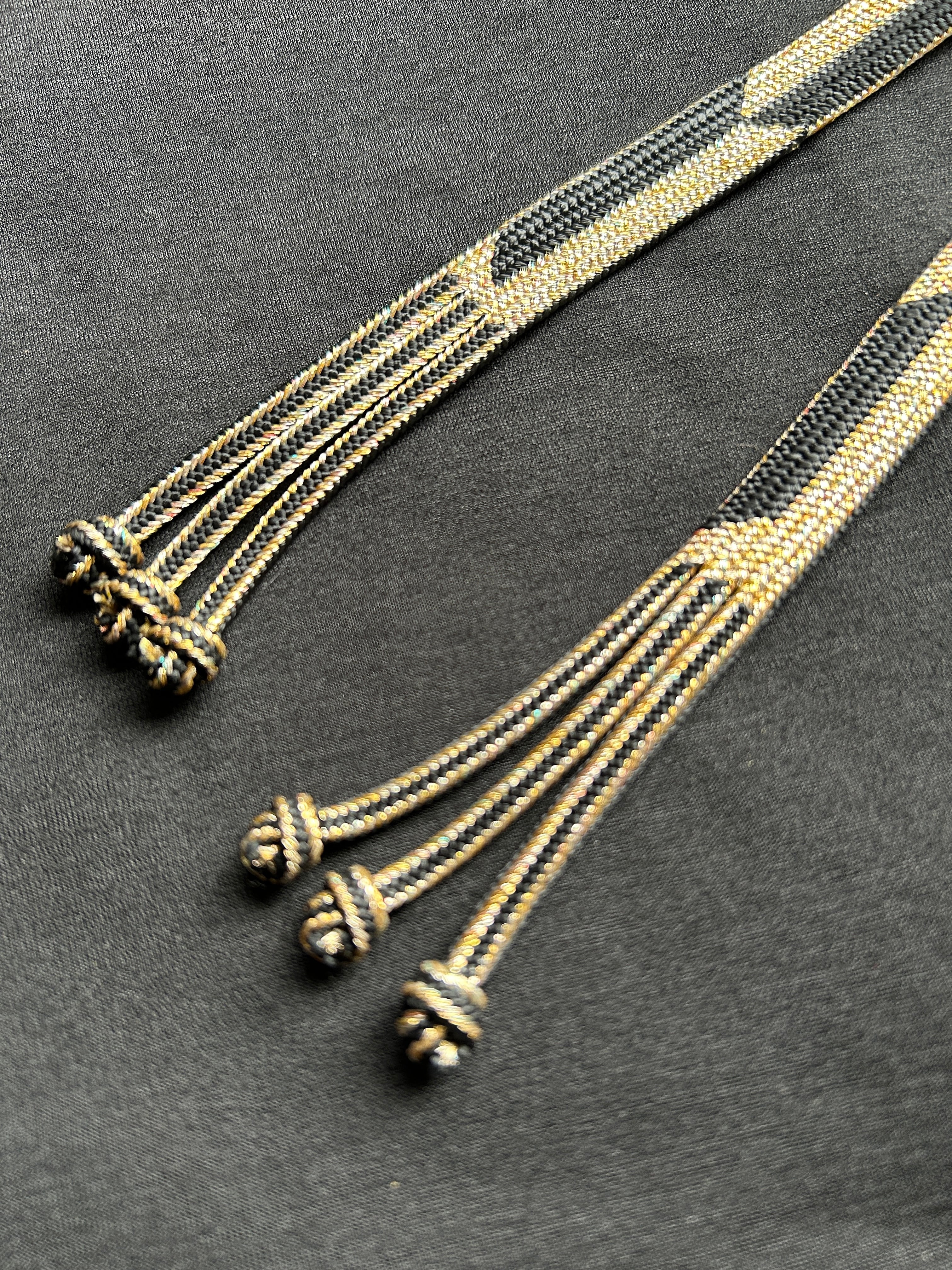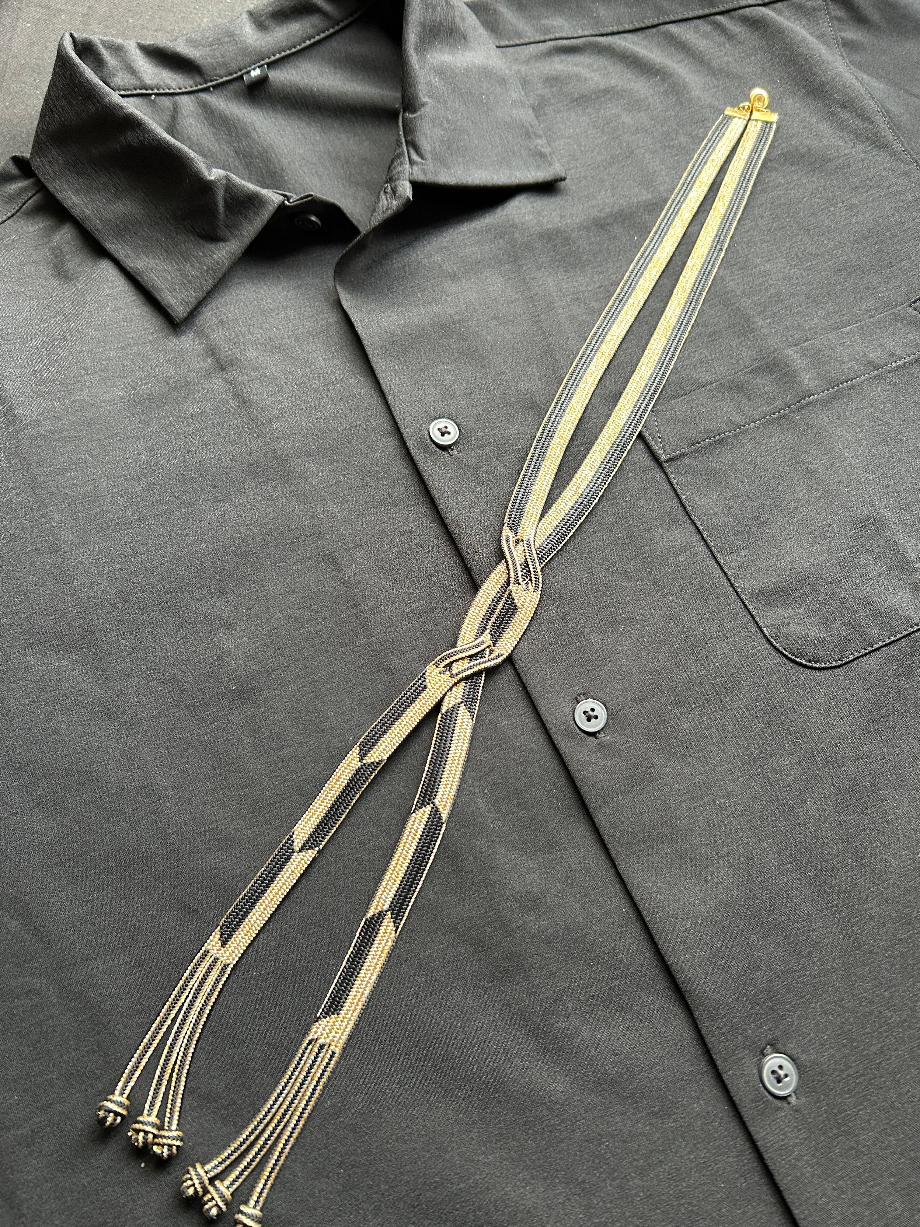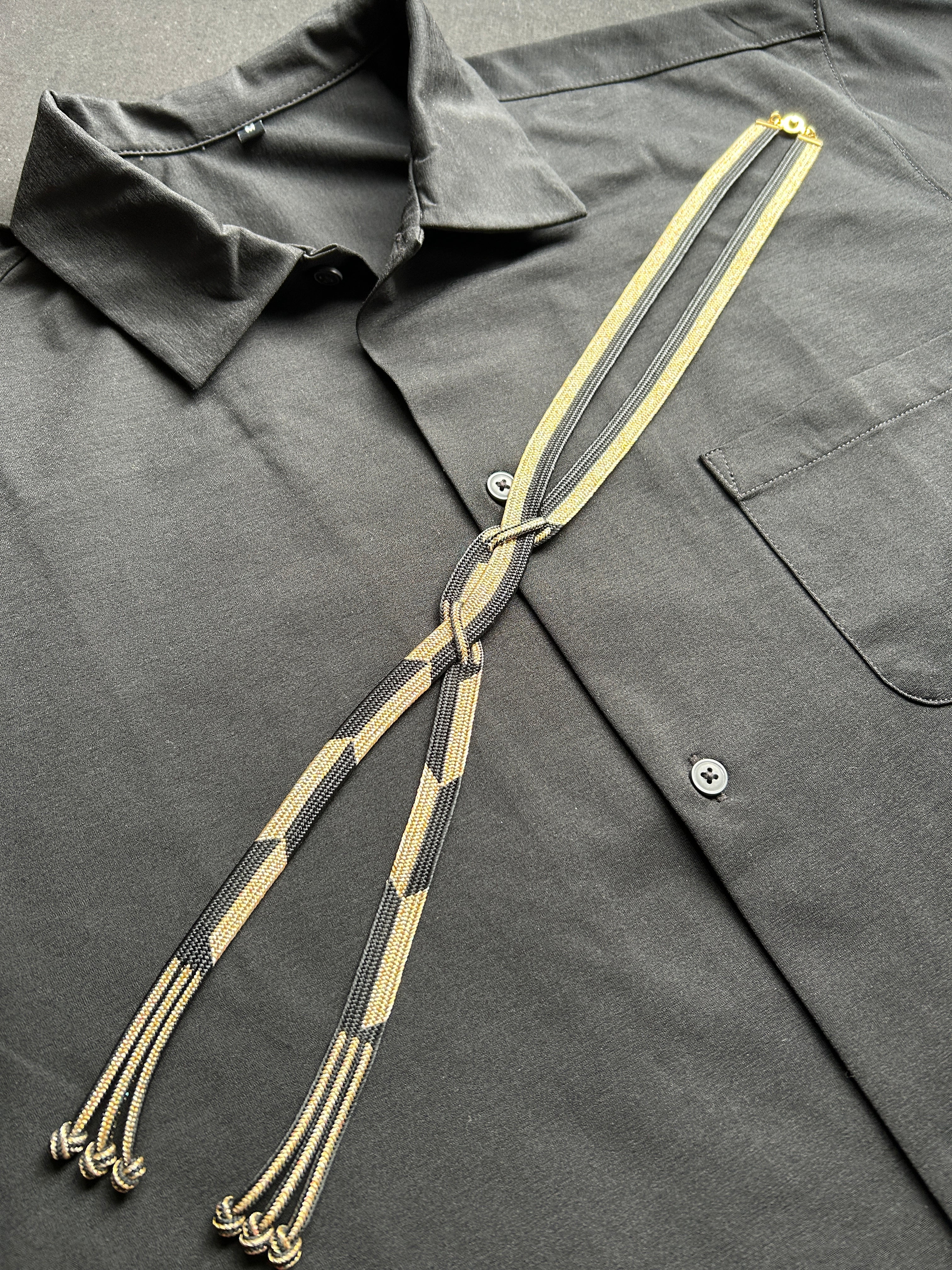 《紗綾結 – さやゆい – ネックコード》黒×金銀糸(リバーシブル)