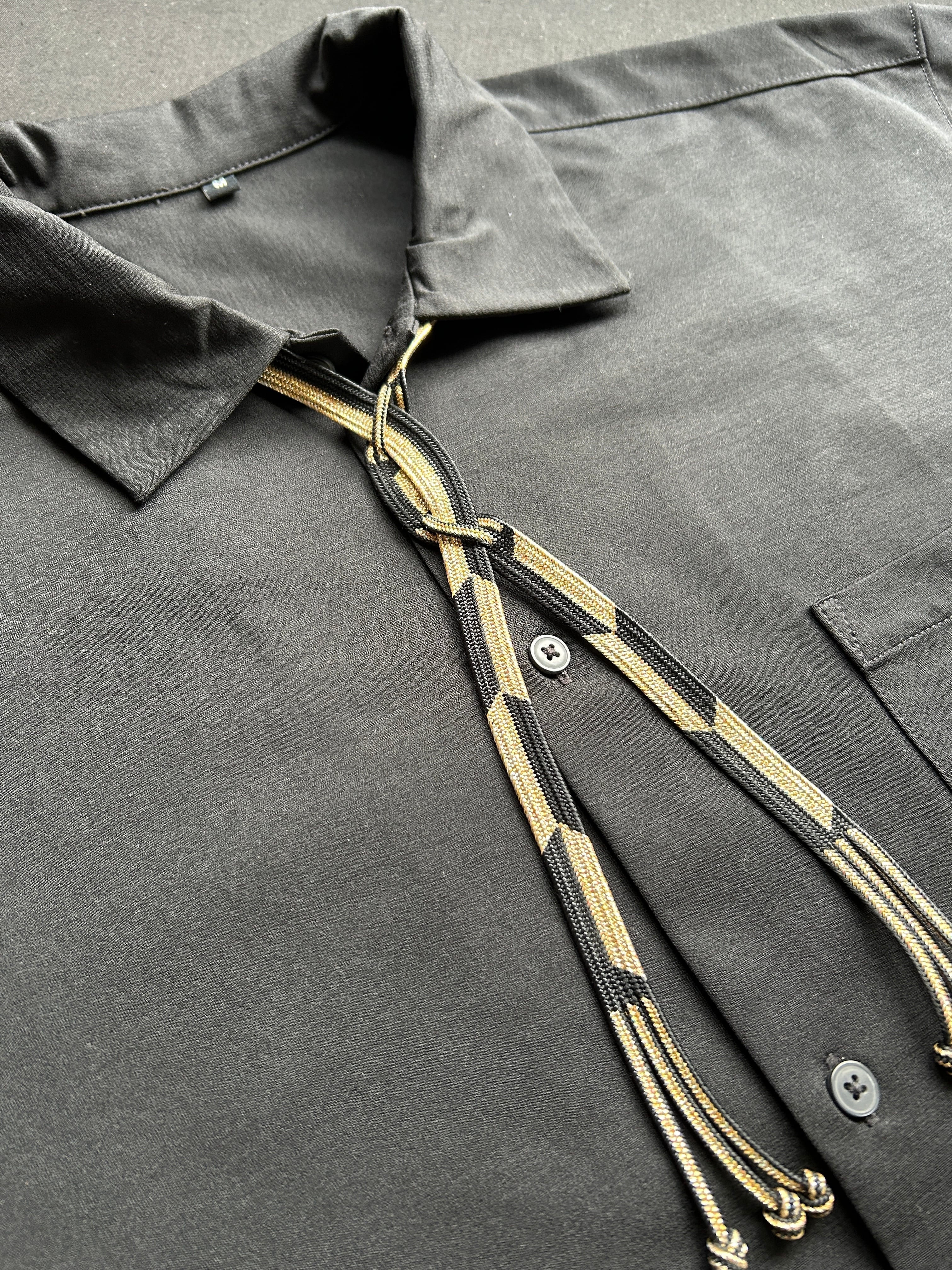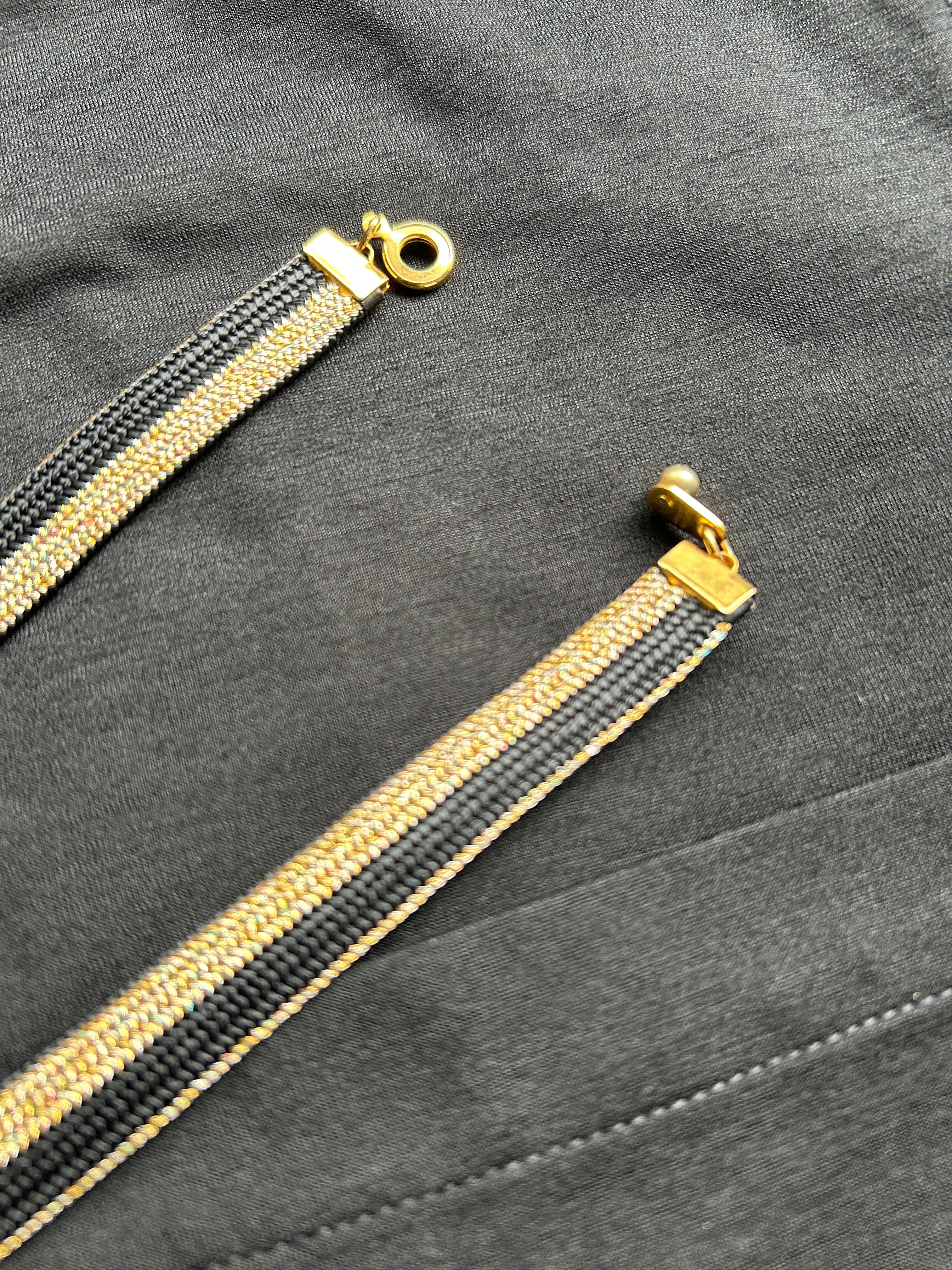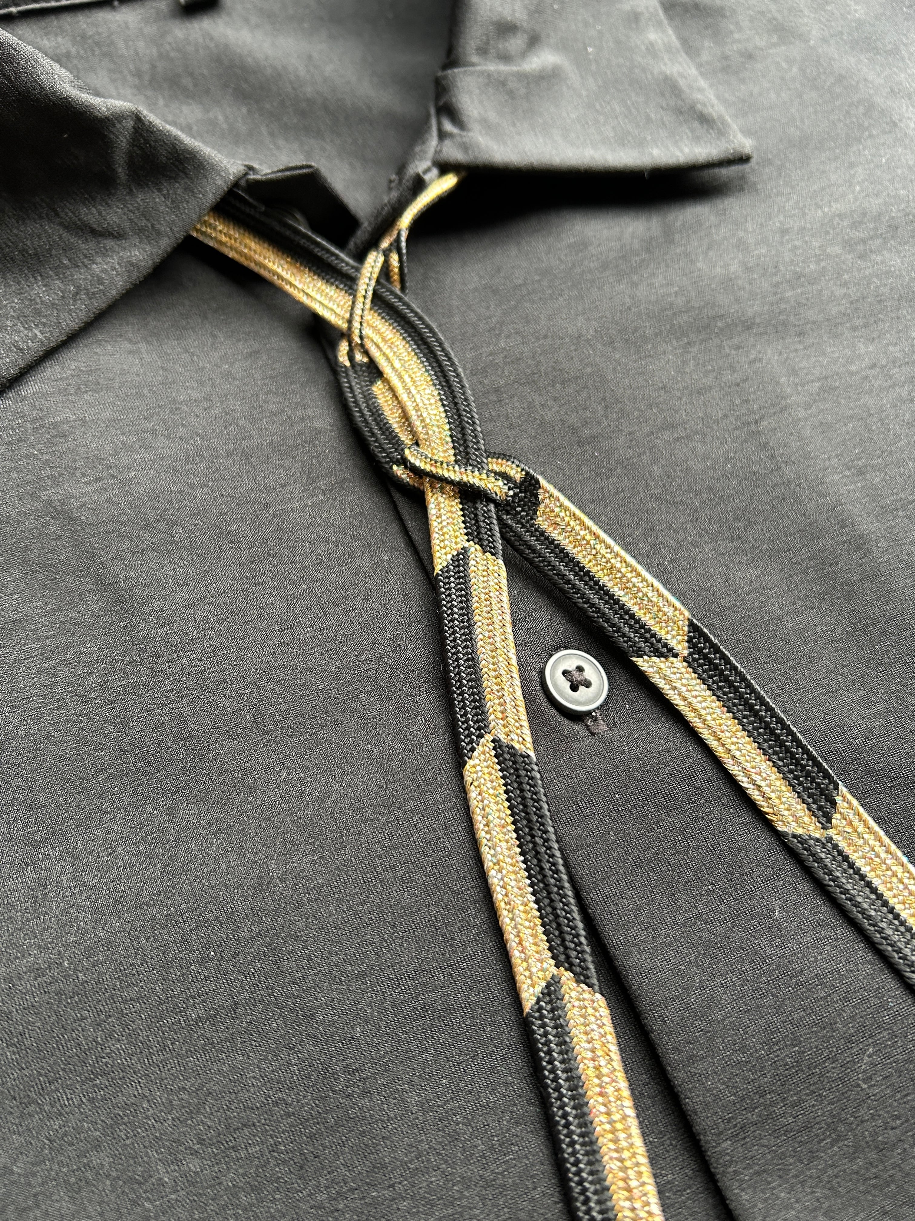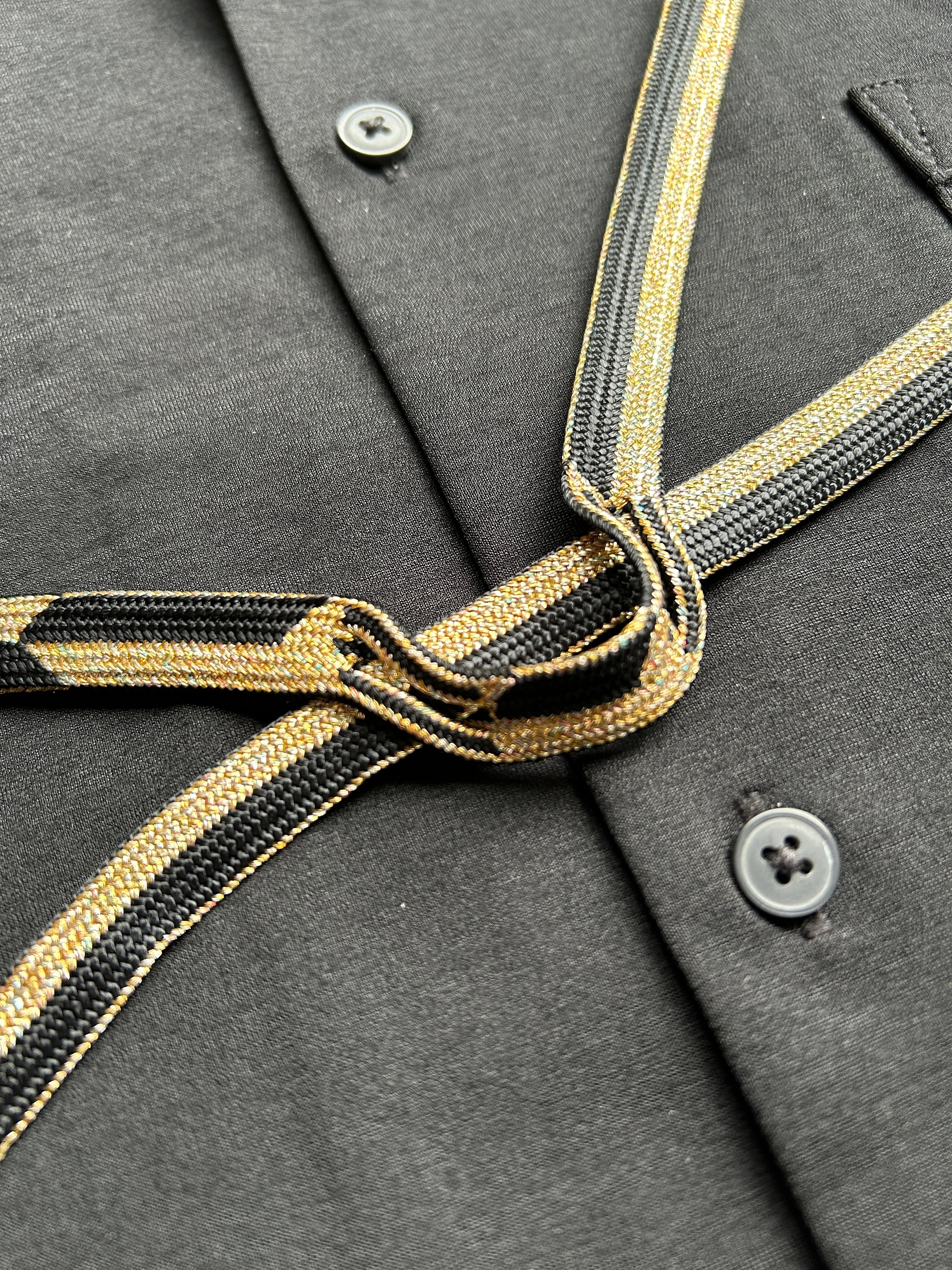 《紗綾結 – さやゆい – ネックコード》黒×金銀糸(リバーシブル)
