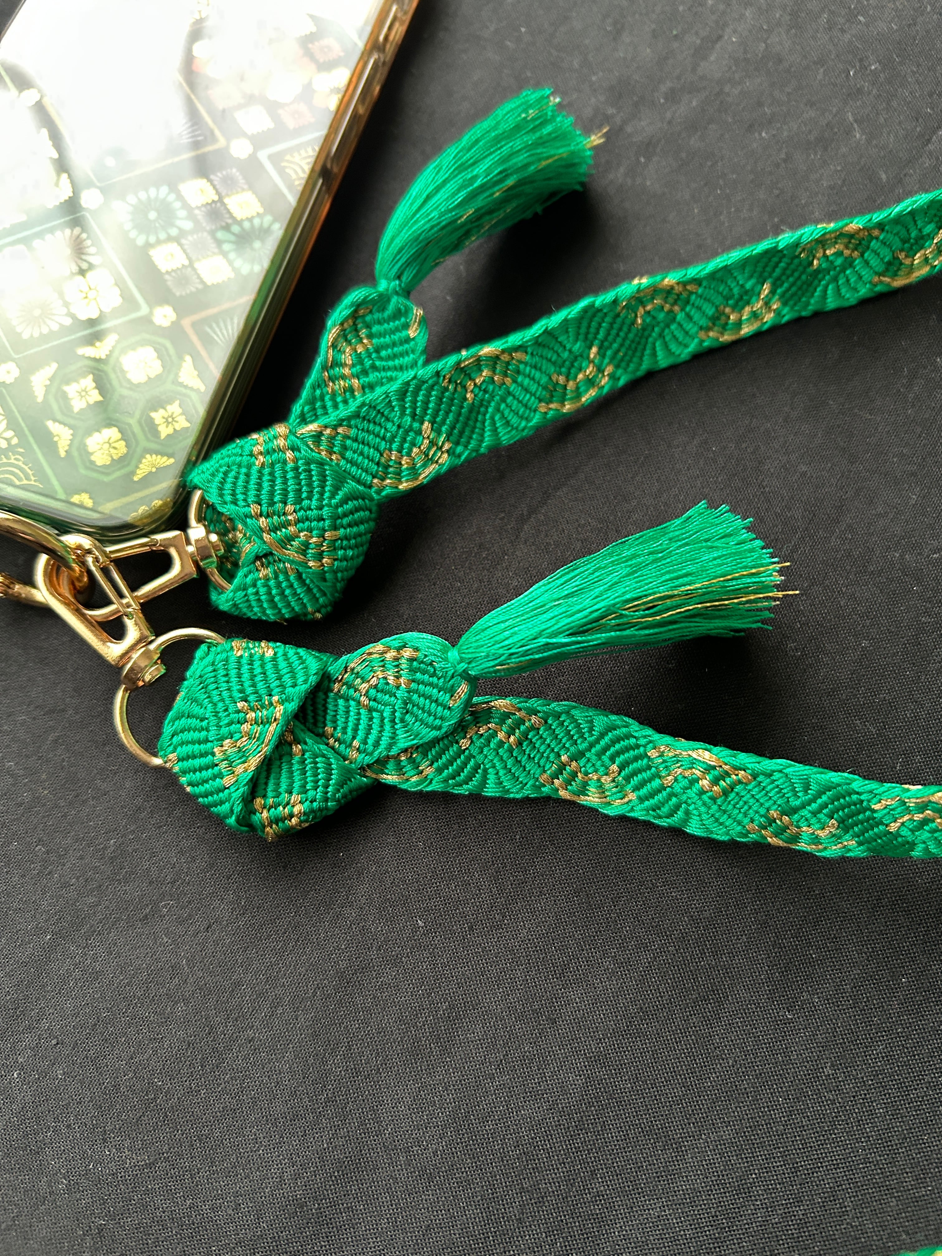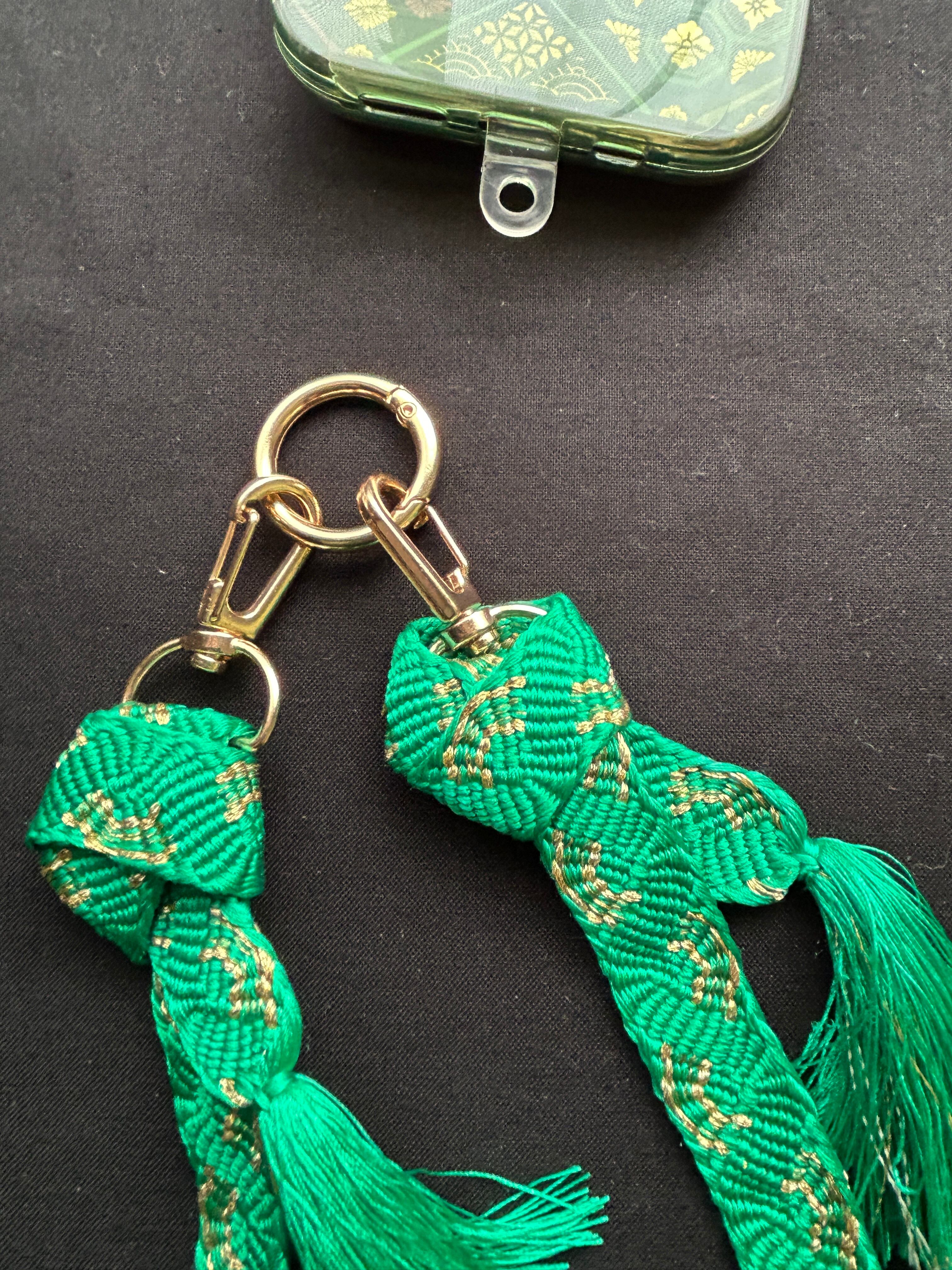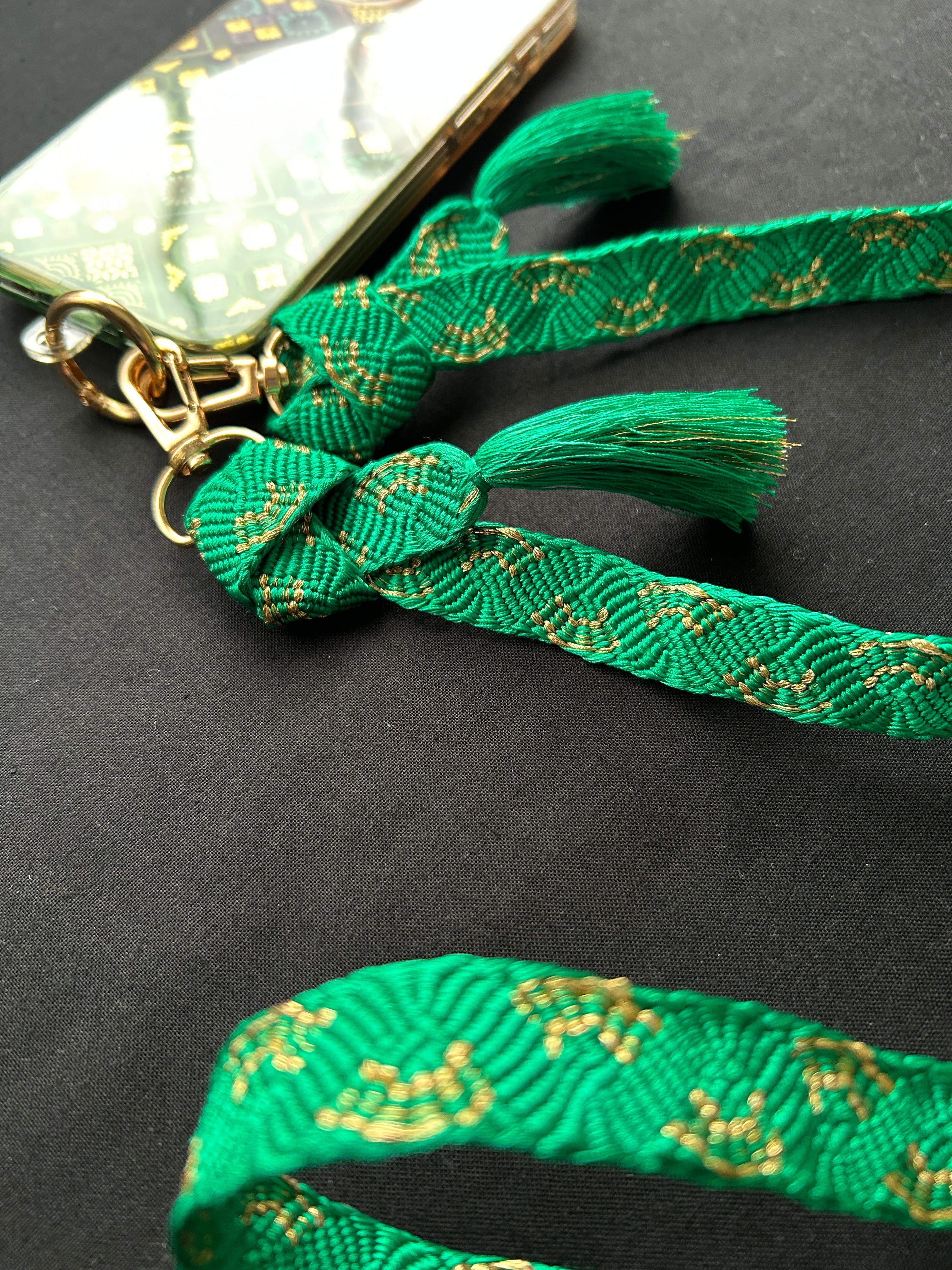 組紐スマホショルダー|和柄・緑×金|長さ調整可|スマホストラップ|斜めがけ