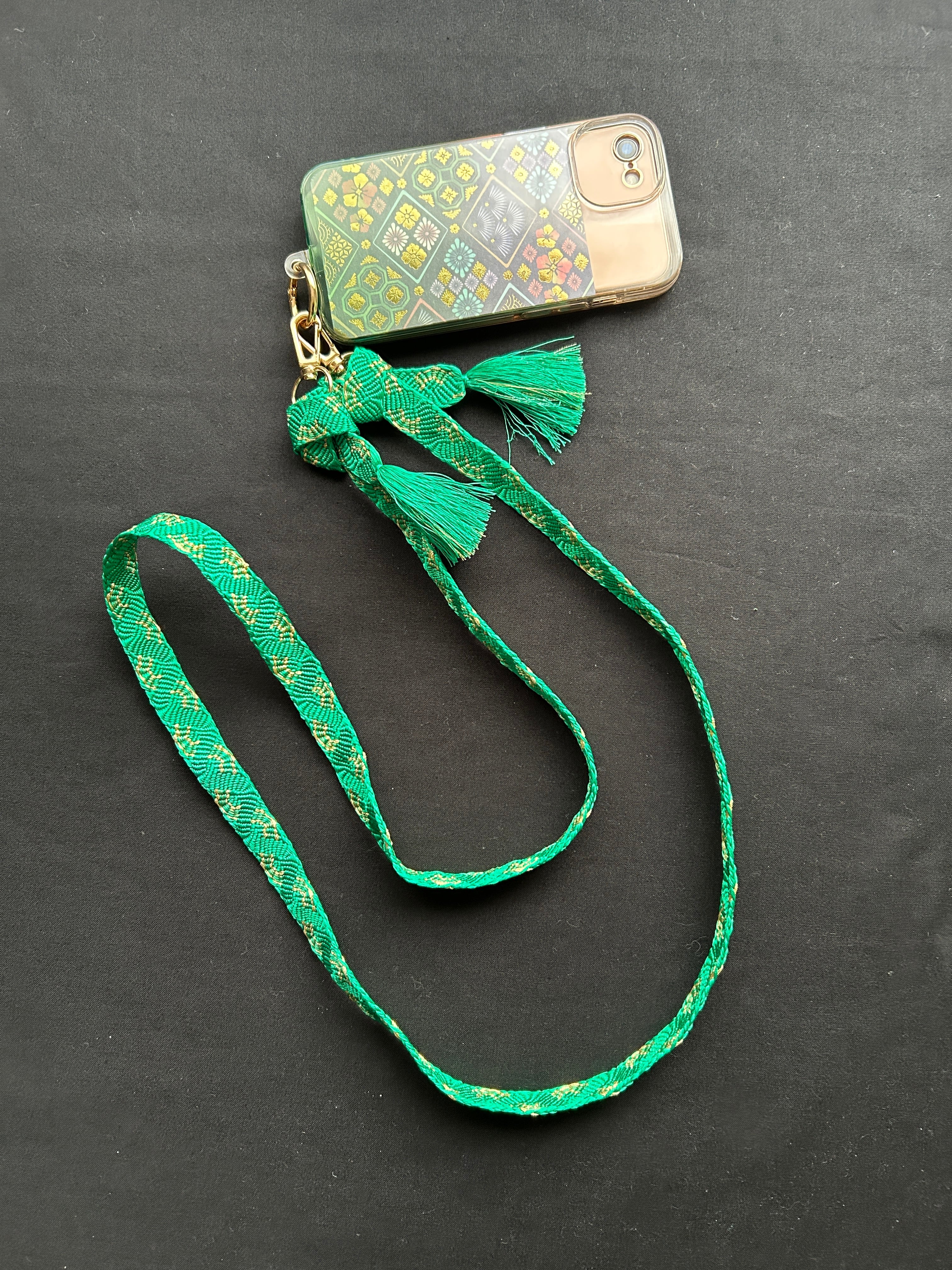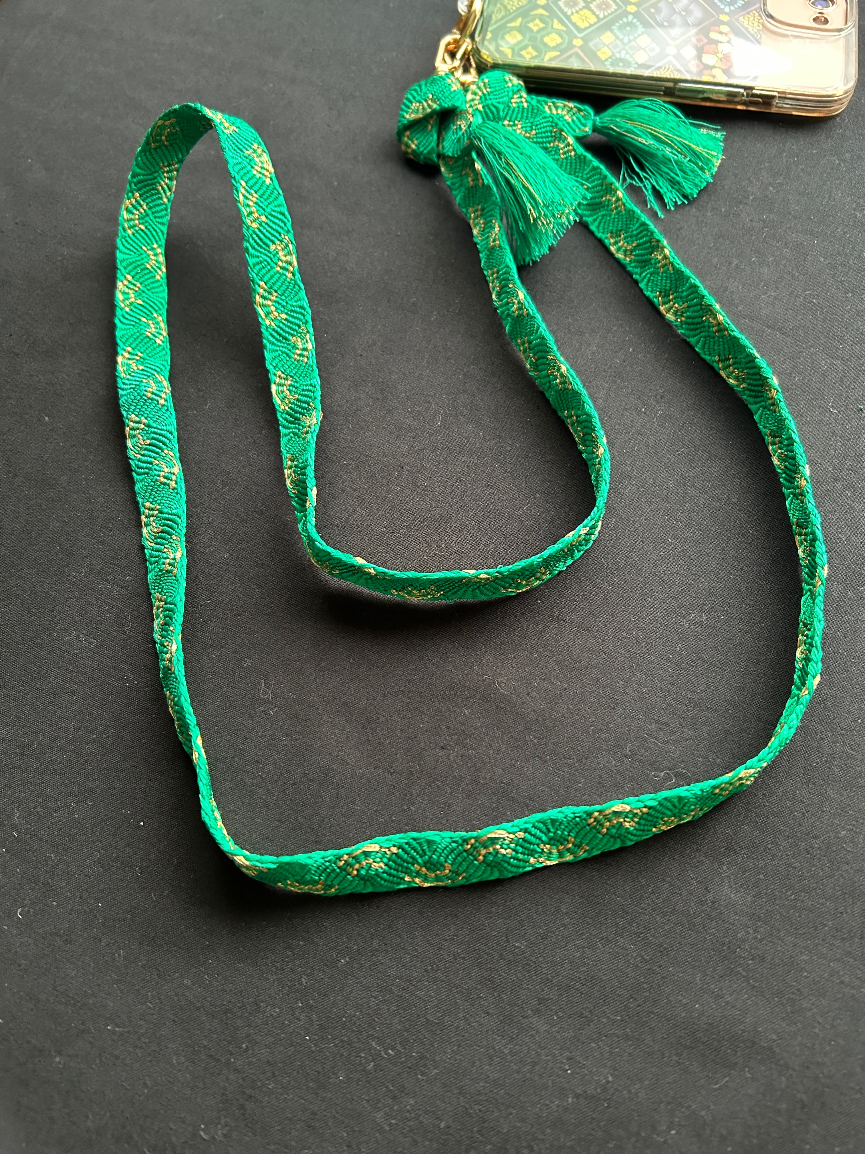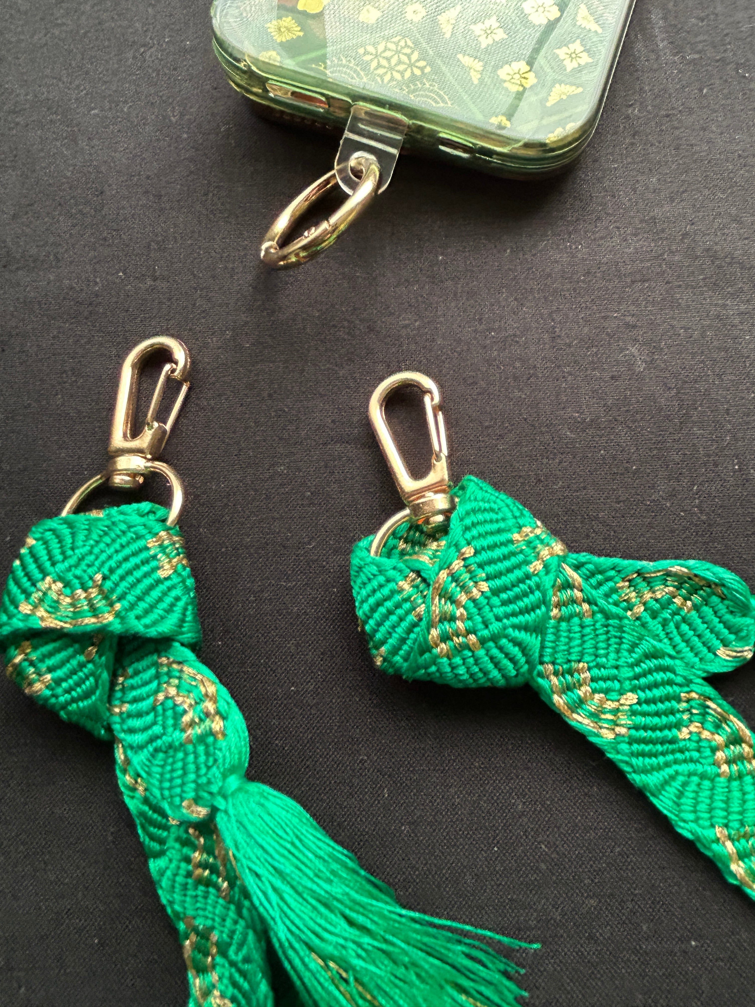 組紐スマホショルダー|和柄・緑×金|長さ調整可|スマホストラップ|斜めがけ