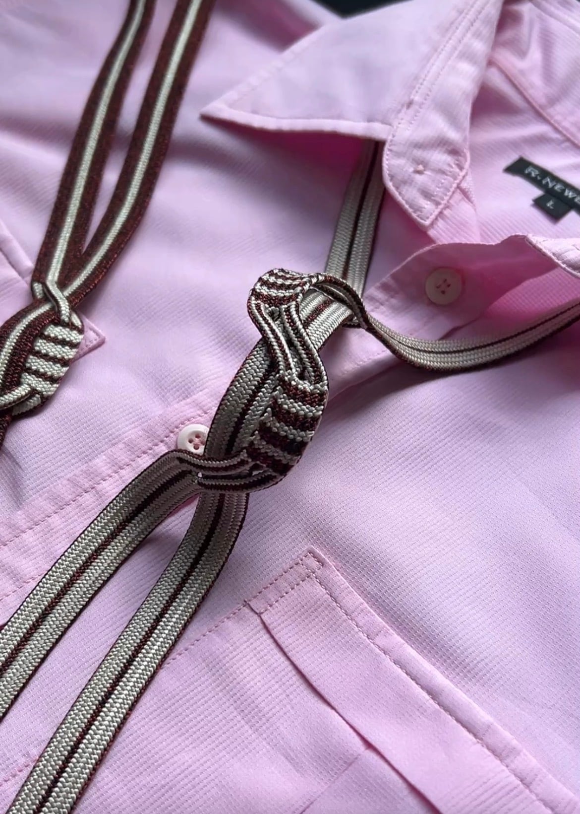 This kumihimo loop tie features a traditional Japanese “Kikko” (tortoise shell) pattern,