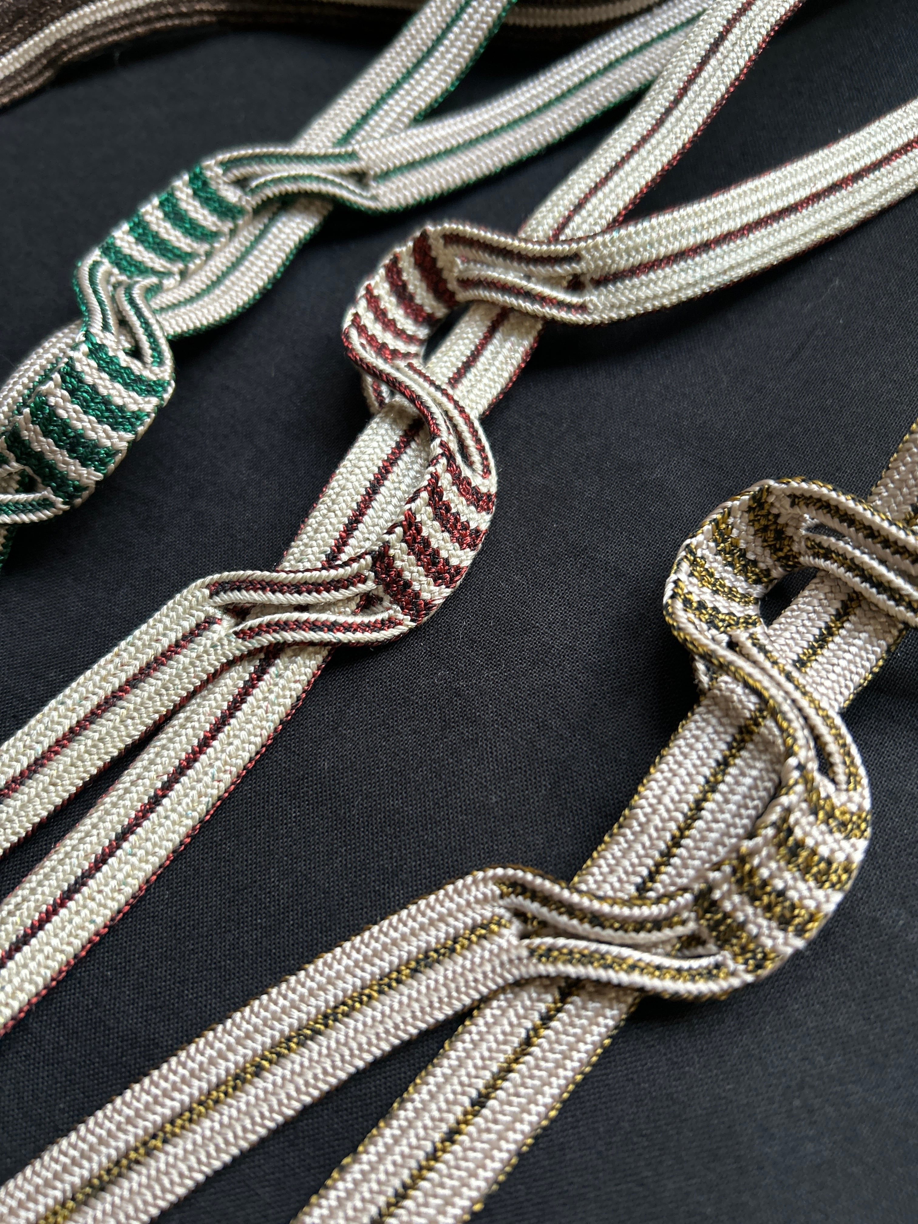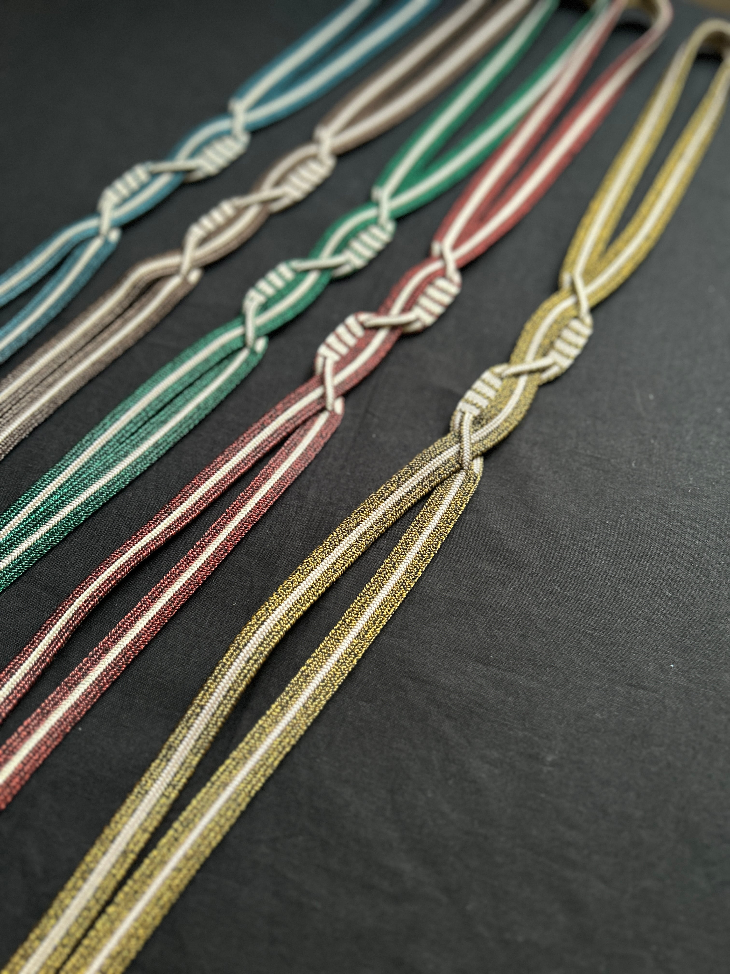 昭和期に稼働していた組紐工場で組まれた紐を用い、