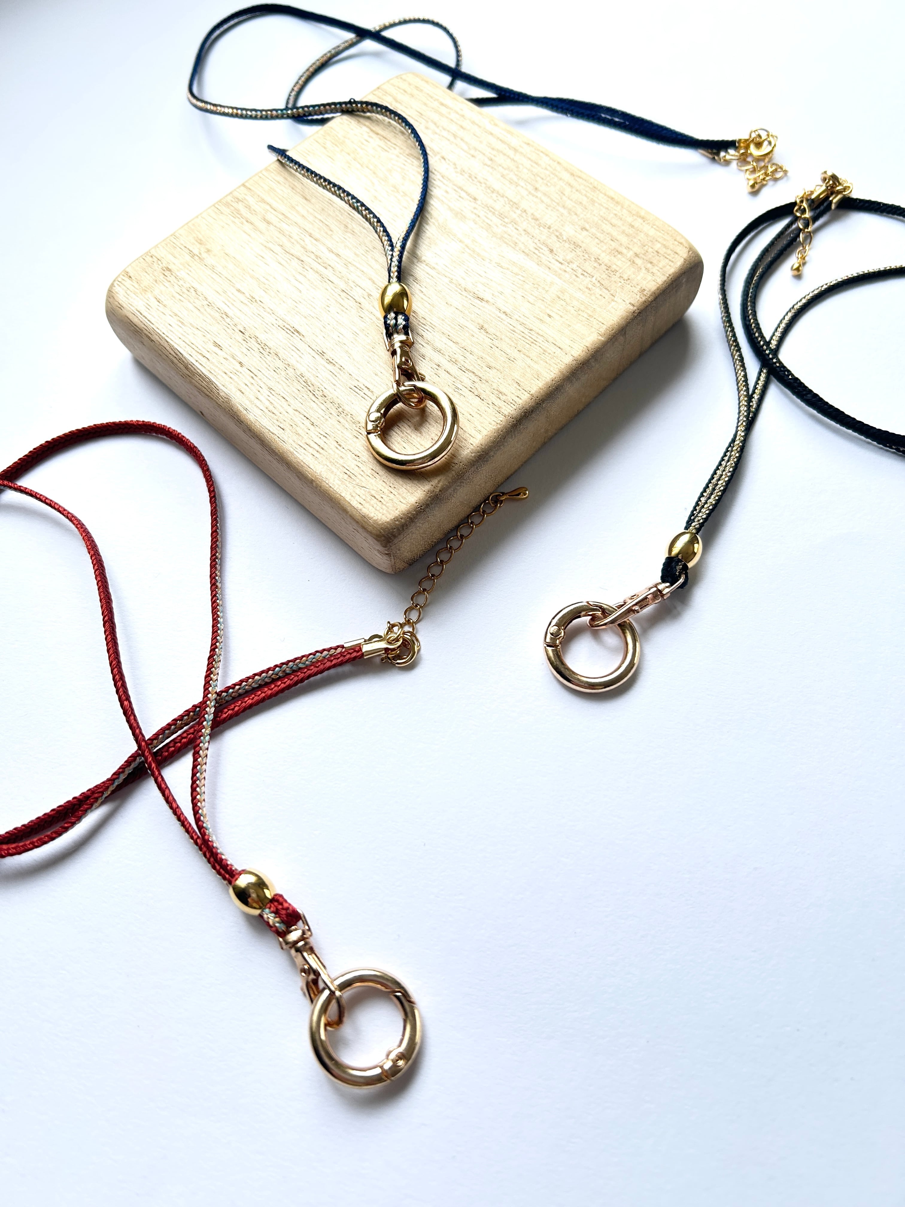 軽量で絡まりにくい紐のため、水洗い・陰干しが可能です。金具部分は水分をしっかり拭き取ってください。汗をかく季節にも安心してお使いいただけます。
